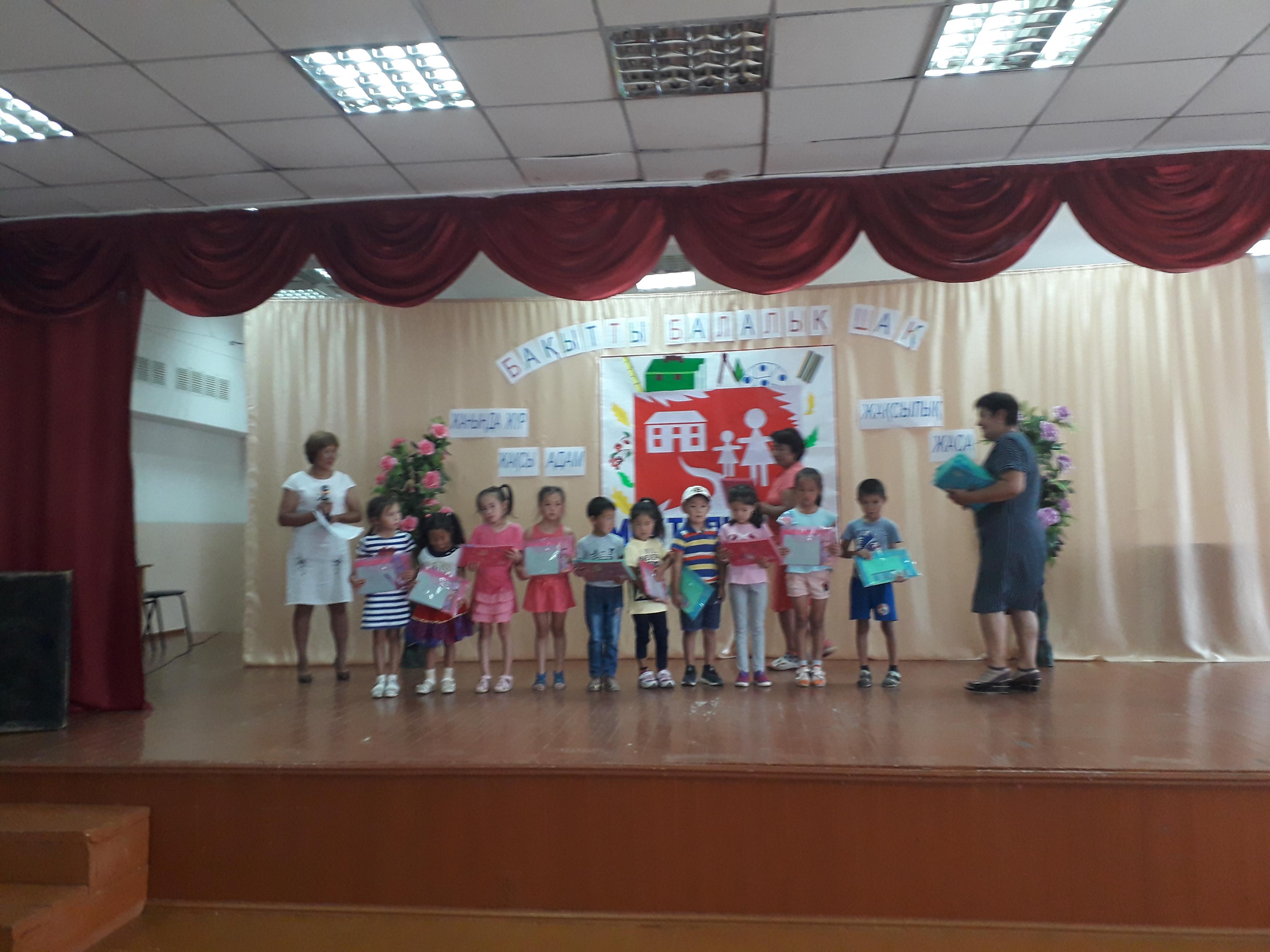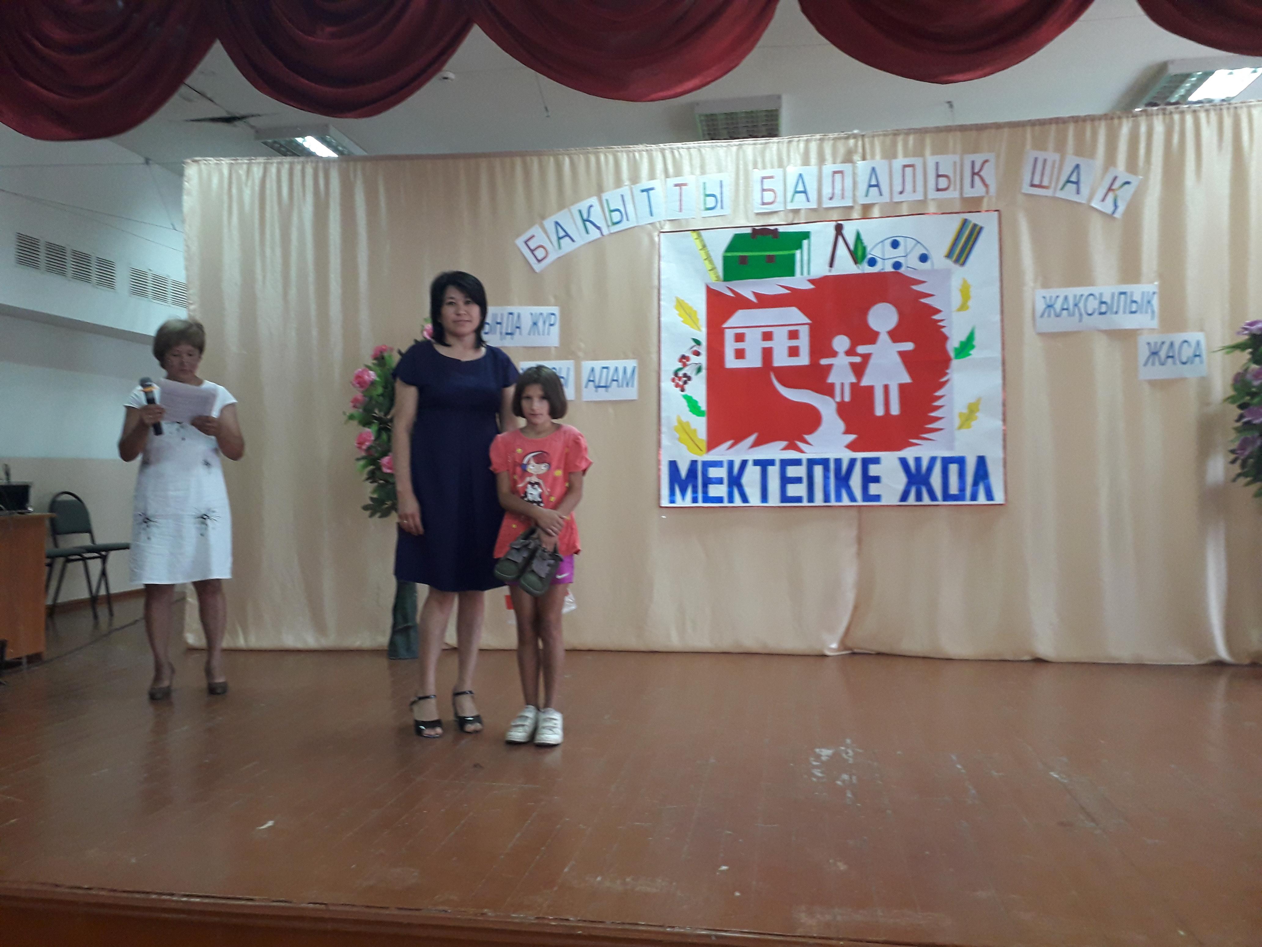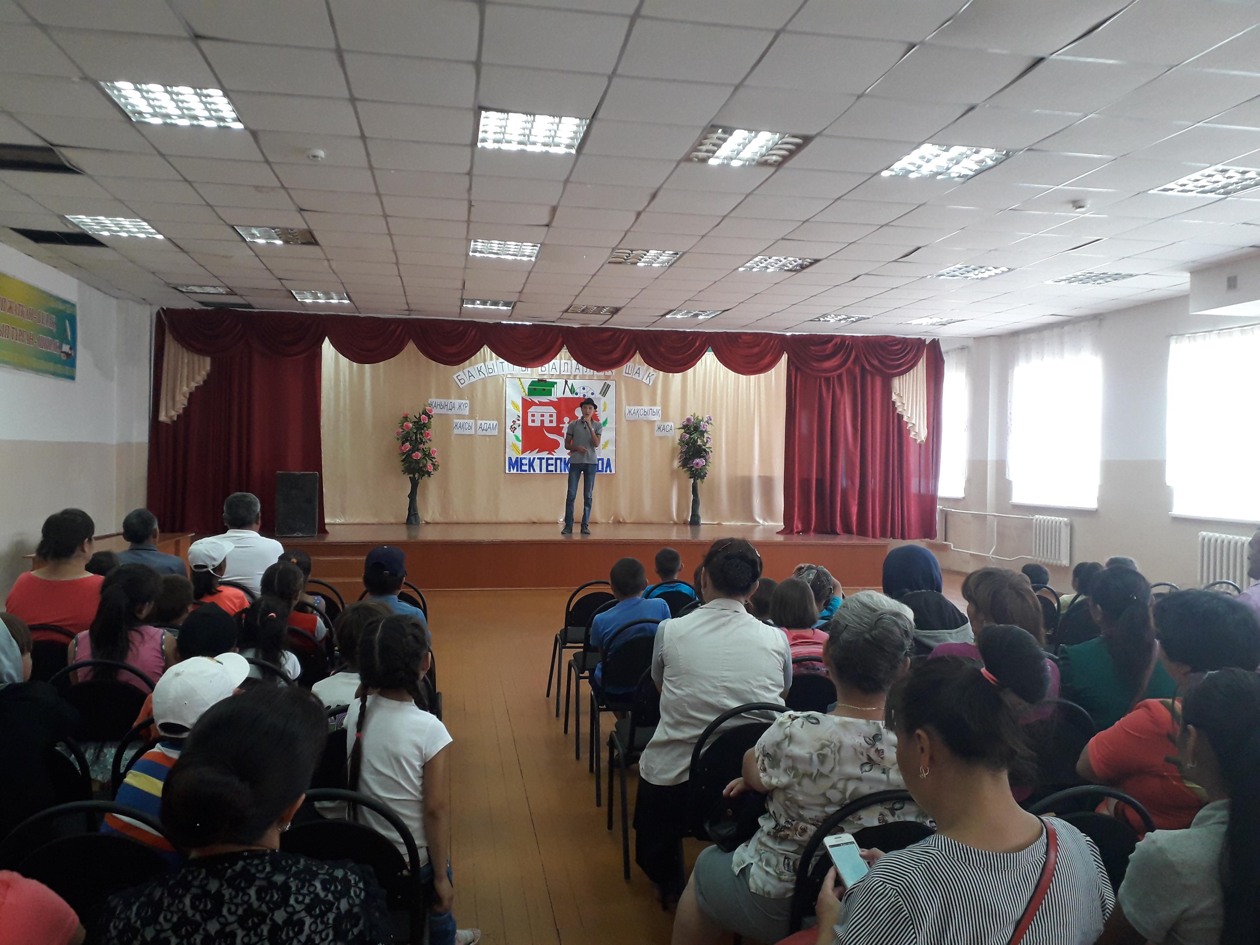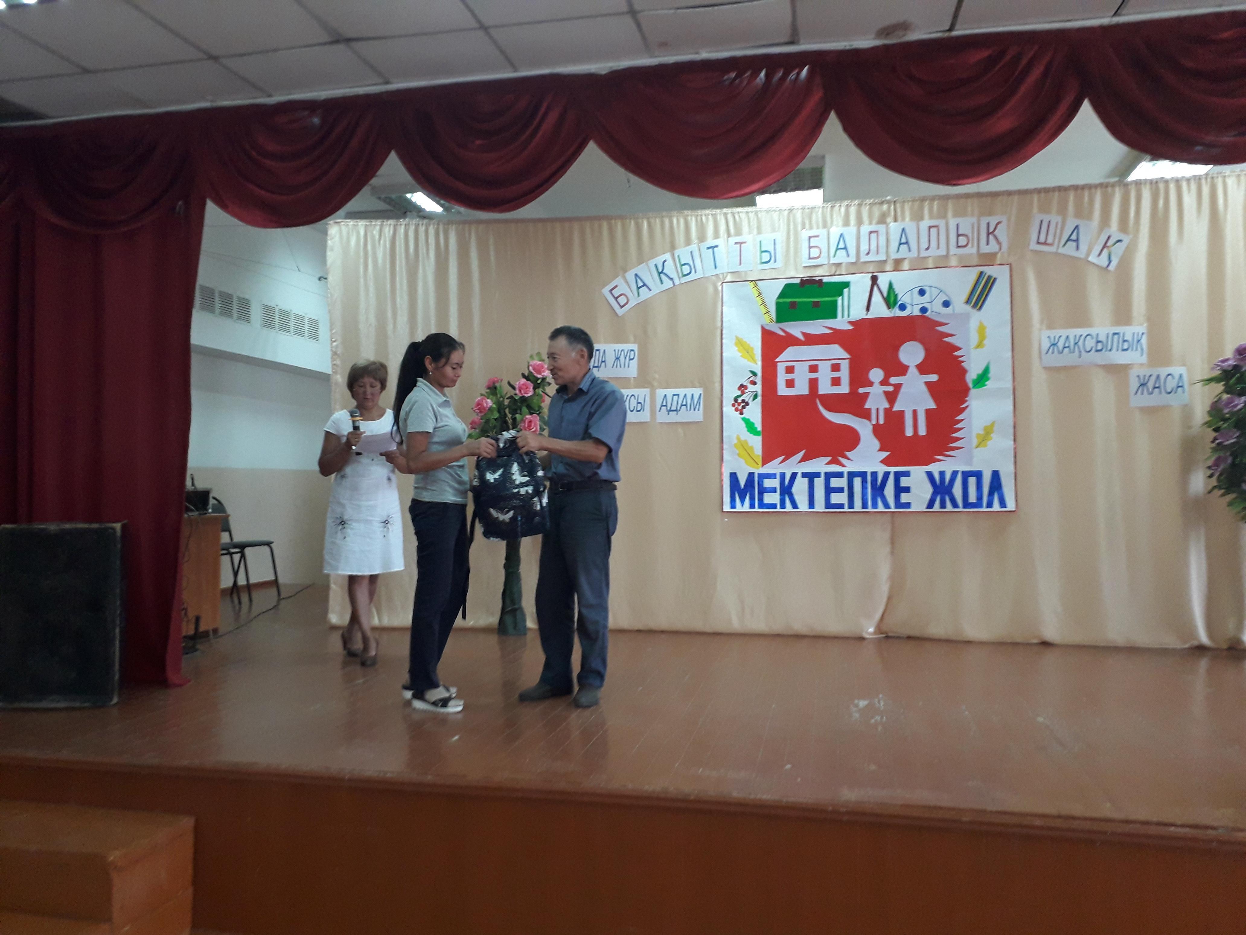 Қазақстан Республикасының Білім және ғылым министрлігінің 20.07.2018жылғы №9/1566 санды хатының негізінде және аудандық білім бөлімінің 30 шілде 2018жылғы №39 бұйрығын басшылыққа ала отырып, 09.08.2018 жылы мектепішілік № 76 бұйрық шығарылып, 25 тамыз күні мектептің мәжіліс залында «Бақытты балалық мекені» ұранымен мектепке жол акциясы өткізілді.