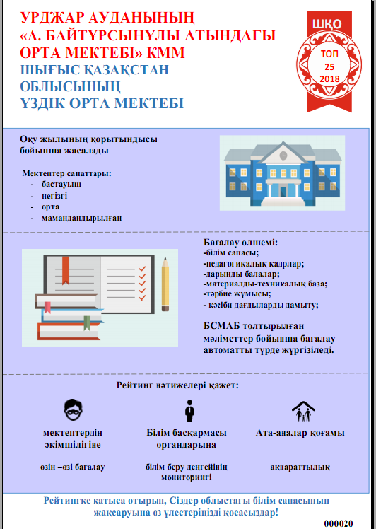28 September 2018 0 1 2 3 4 5 «Ахмет Байтұрсынұлы атындағы орта мектебі»КММ үздік мектеп ТОП 25 2018 Теги: ТОП 25 2018