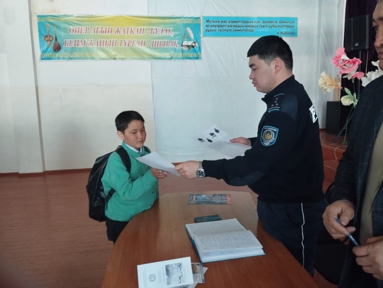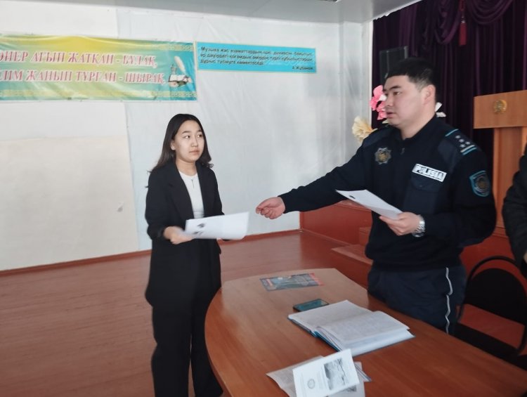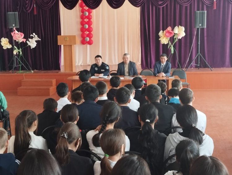 "Ахмет Байтұрсынұлы атындағы орта мектебі" КММ- сі жасөспірімдер арасында құқықбұзушылықтың алдын алу мақсатында Мақаншы ПБ кәмелетке толмағандар инспекторы полиция капитаны Бейсканов Дастан Шарипхановичпен және ауылдық полицей Тусупбеков Ернар Ержанұлы мен кездесу ұйымдастырылды.