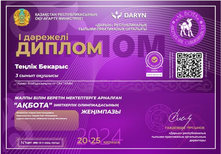 Ақбота олимпиадасы » Абай облысы білім басқармасы Мақаншы ауданы білім бөлімінің "Ахмет Байтұрсынұлы атындағы орта мектебі" КММ