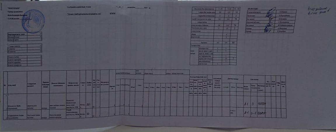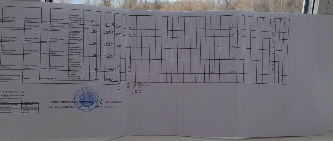 Тарификация » Абай облысы білім басқармасы Мақаншы ауданы білім бөлімінің "Ахмет Байтұрсынұлы атындағы орта мектебі" КММ