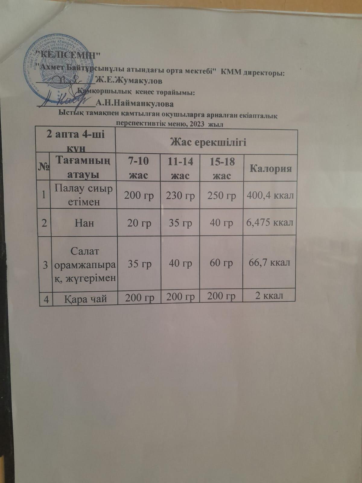 Күнделікті ас мәзірі 23.02.2023 » Абай облысы білім басқармасы Мақаншы ауданы білім бөлімінің "Ахмет Байтұрсынұлы атындағы орта мектебі" КММ