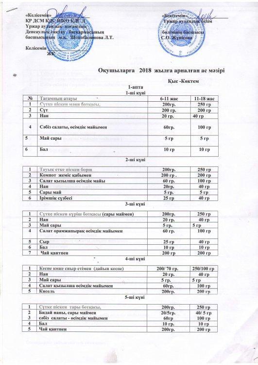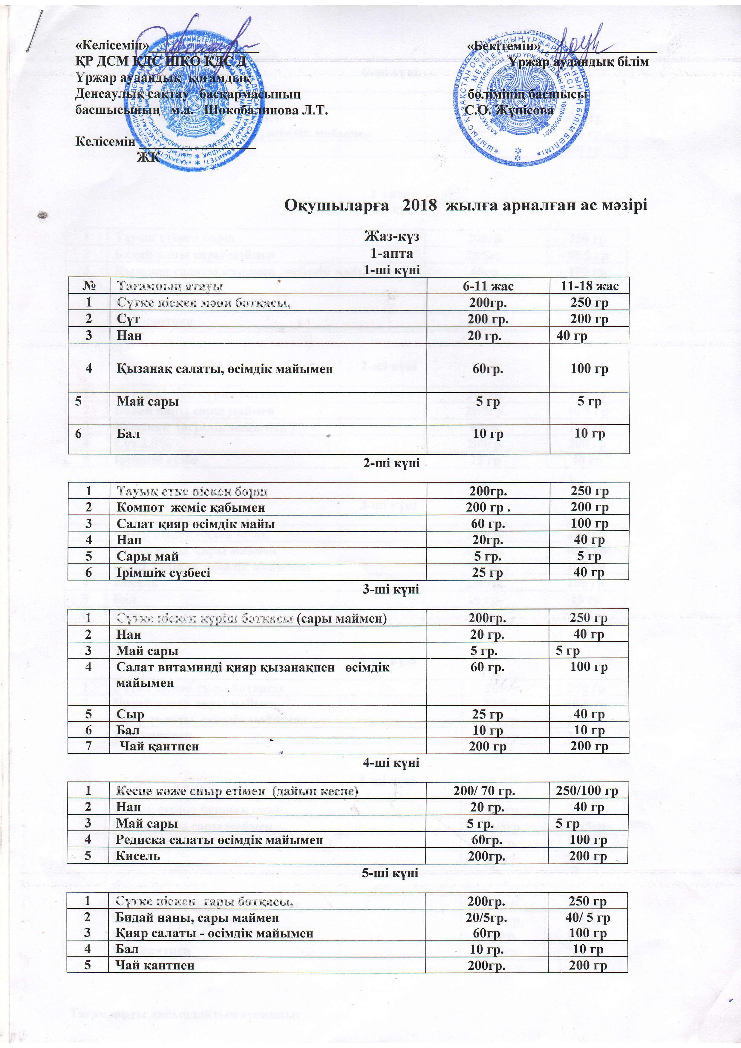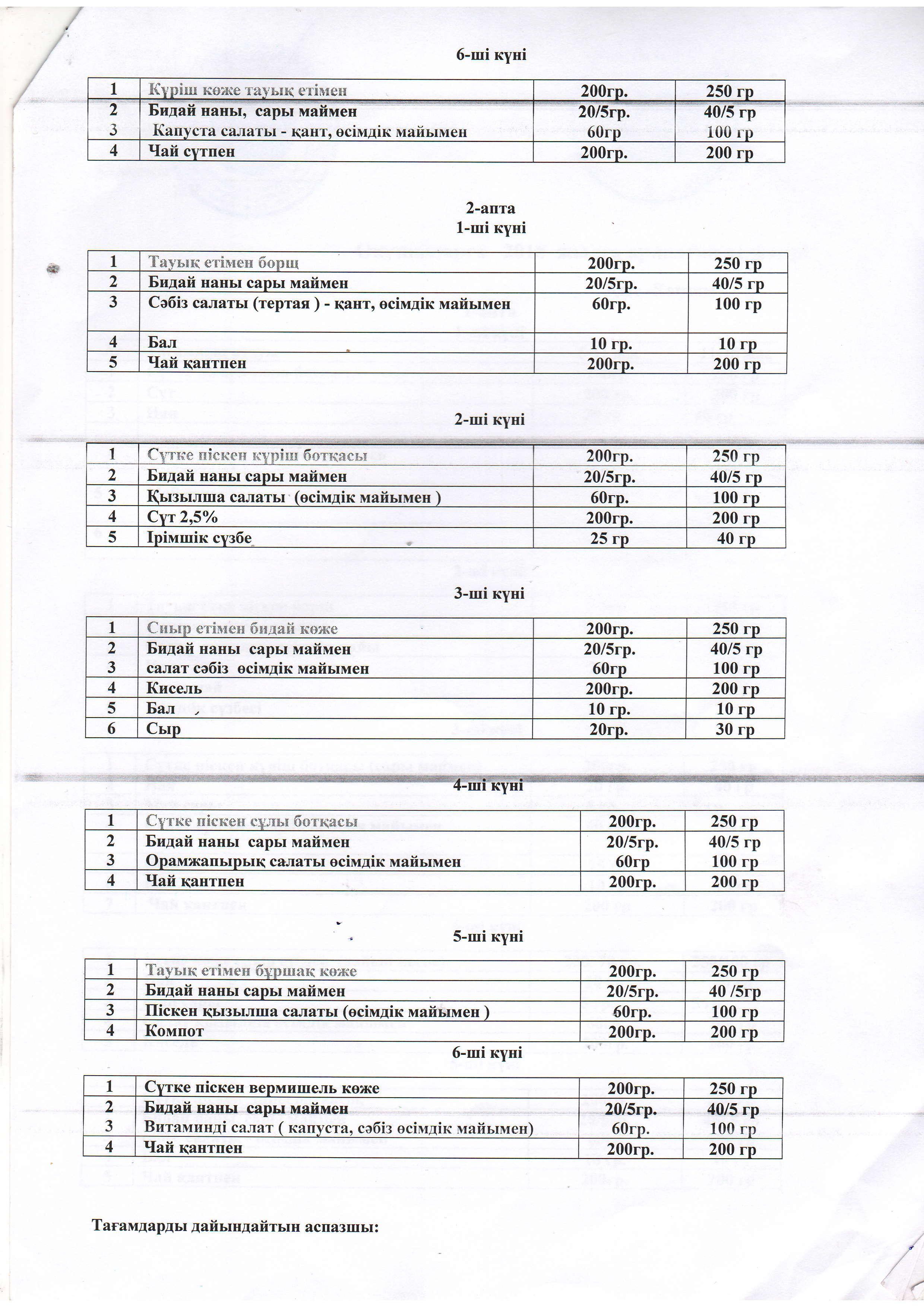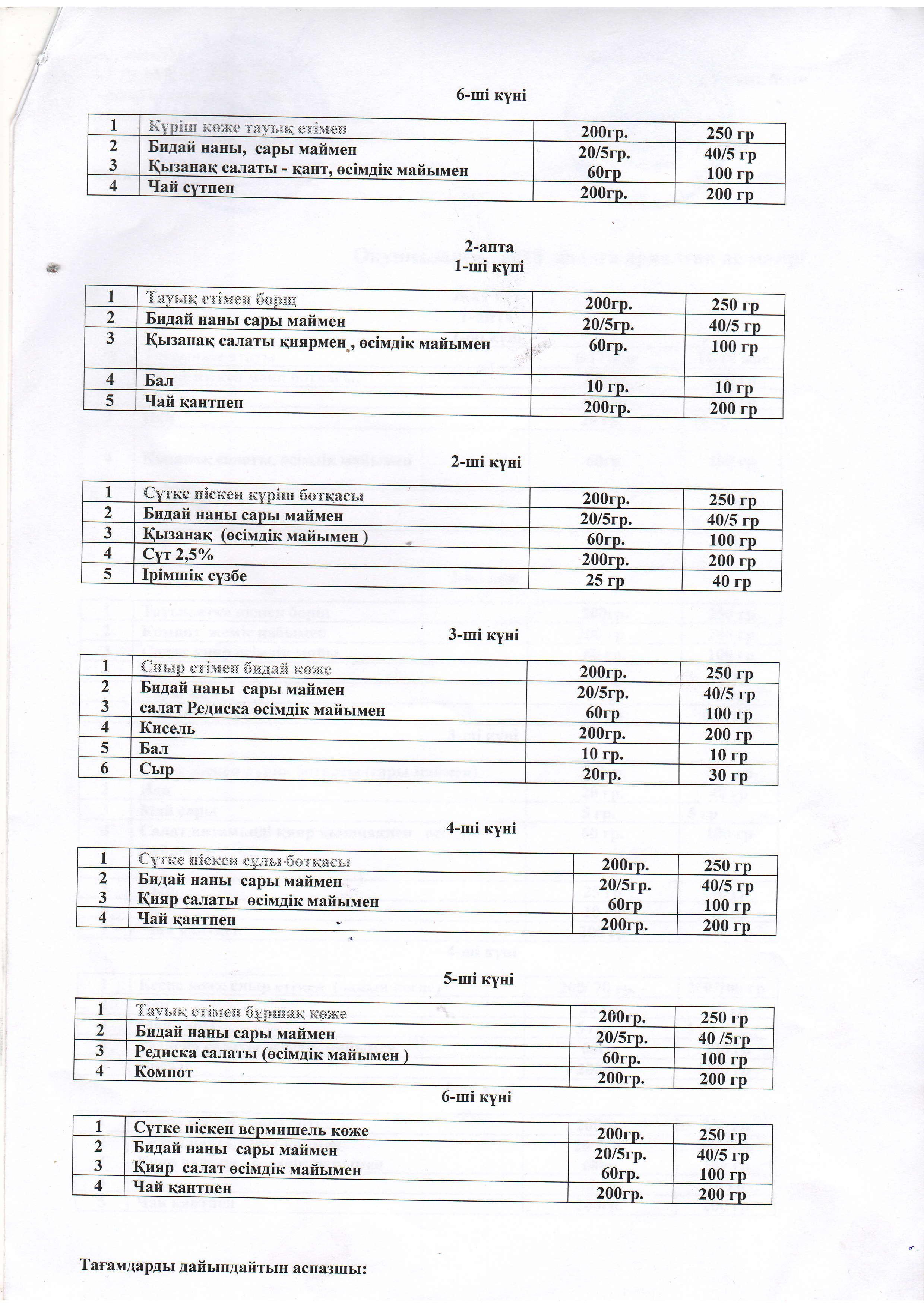 Мектеп асханасының мәзірі » Абай облысы білім басқармасы Мақаншы ауданы білім бөлімінің "Ахмет Байтұрсынұлы атындағы орта мектебі" КММ