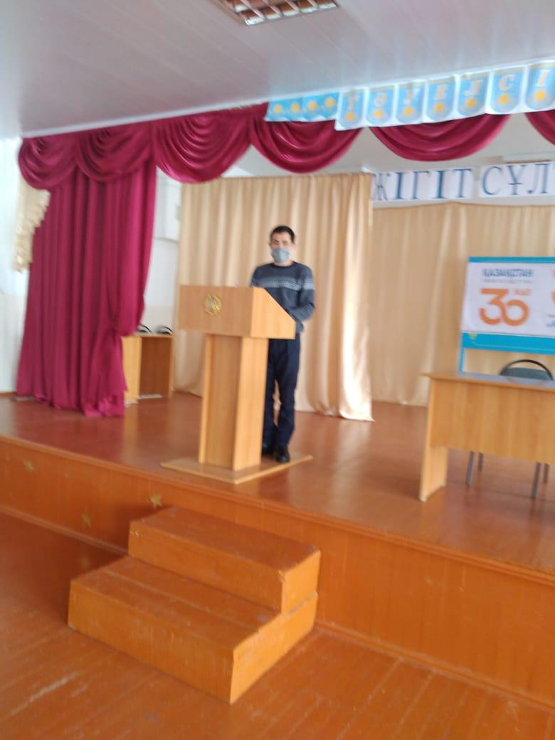 Жарыс сөзге мектеп директоры Жумакулов Жайық Елеуканович, тәрбие ісінің ұйымдастырушысы Жаркынбаев Нуржан Байсенбекұлы, тарих пәнінің мұғалімі Касенова Нургуль Берикказыевна шықты.