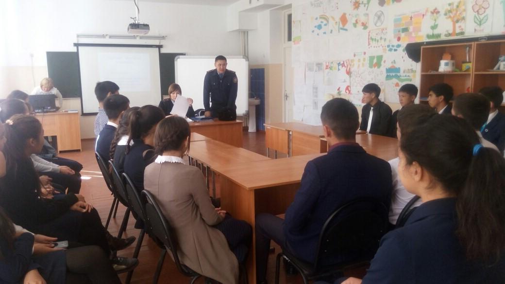 «Полиция- дос және қорғаушы» дөңгелек үстелге Мақаншы полиция бөлімінің кәмелеттік жасқа толмаған ішкі істер бөлімінің полиция капитаны Назым Токтарбекқызы Нурмухаметова мен Келдімұрат ауылдық учаскелік инспекторы Мұхтар Құрмангалиев шақырылды. Келген қонақтар білім алушыларға өздерінің жұмыс бағытымен таныстырып, полиция қызметкерлерінің жұмысы қиын және жауапты екенін айта келе, әр бір полиция қызметкерлері қоғамның қауіпсіздігі мен халық үшін қызмет ететіндігі туралы айтып өтті.Сонымен қатар келген қонақтар білім алушыларға әкімшілік құқық бұзушылыққа тоқталып ,ҚР ӘҚБК-ң 25 бабында көзделгендей жеке тұлғаның құқыққа қарсы, кінәлі әркеті не әркетсіздігі әкімшілк құқық бұзушылық деп танылатындығын түсіндірді. Әсіресе ҚР ӘҚБК 442 бап/ тұрғын жайдан тыс заңды өкілсіз жүрген кәмелетке толмағандар және қоғамдық орындардың тазалығына кері әсерін тигізу/ мектепке шемішке әкелу, түкіру,тб/ тәртіпсіздікке баса назар аударып түсіндірме жұыстарын жүргізіді.