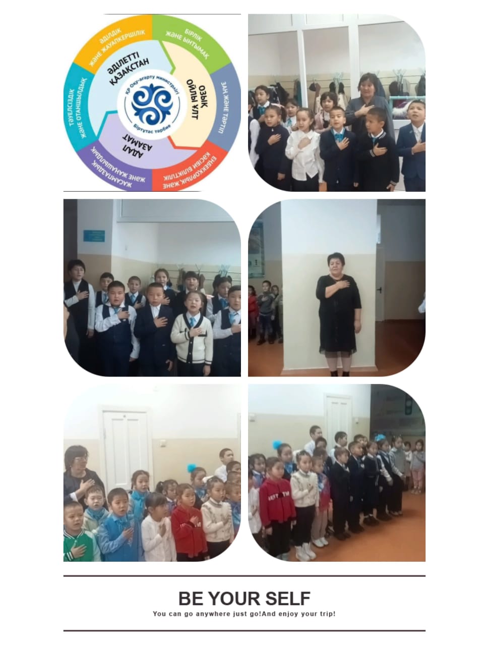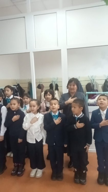 «Ахмет Байтұрсынұлы атындағы орта мектебі» КММ-нің мектеп оқушылары Жаңартылған "Біртұтас тәрбие " бағдарламасының кешенді жоспарына сәйкес оқу аптасының бірінші күні ҚР Әнұранын орындады