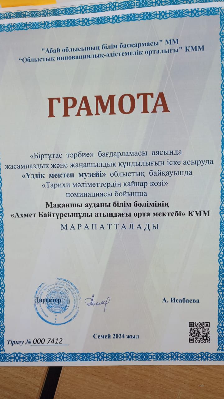 06 февраль 2025 0 1 2 3 4 5 “Үздік мектеп музейі” облыстық байқауында “Тарихи мәліметтер қайнар көзі” номинациясы