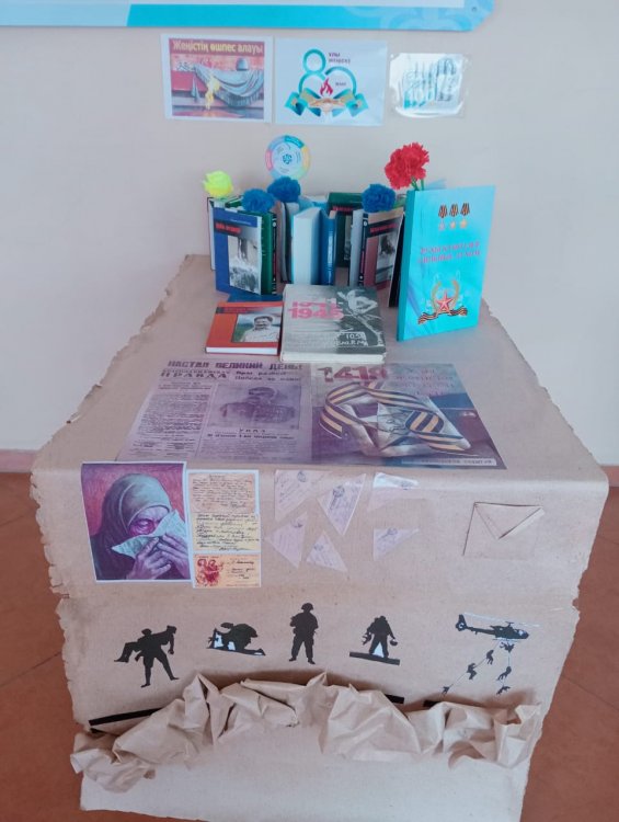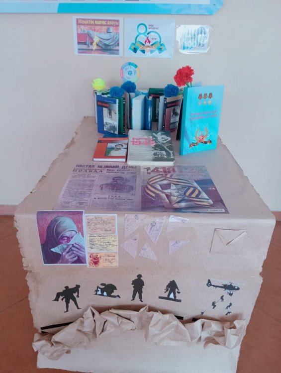 22 апрель 2025 0 1 2 3 4 5 Мектеп кітапханашысының Ұлы Отан соғысының аяқталуына 80 жыл толуына орай ұйымдастырған көрмесі
