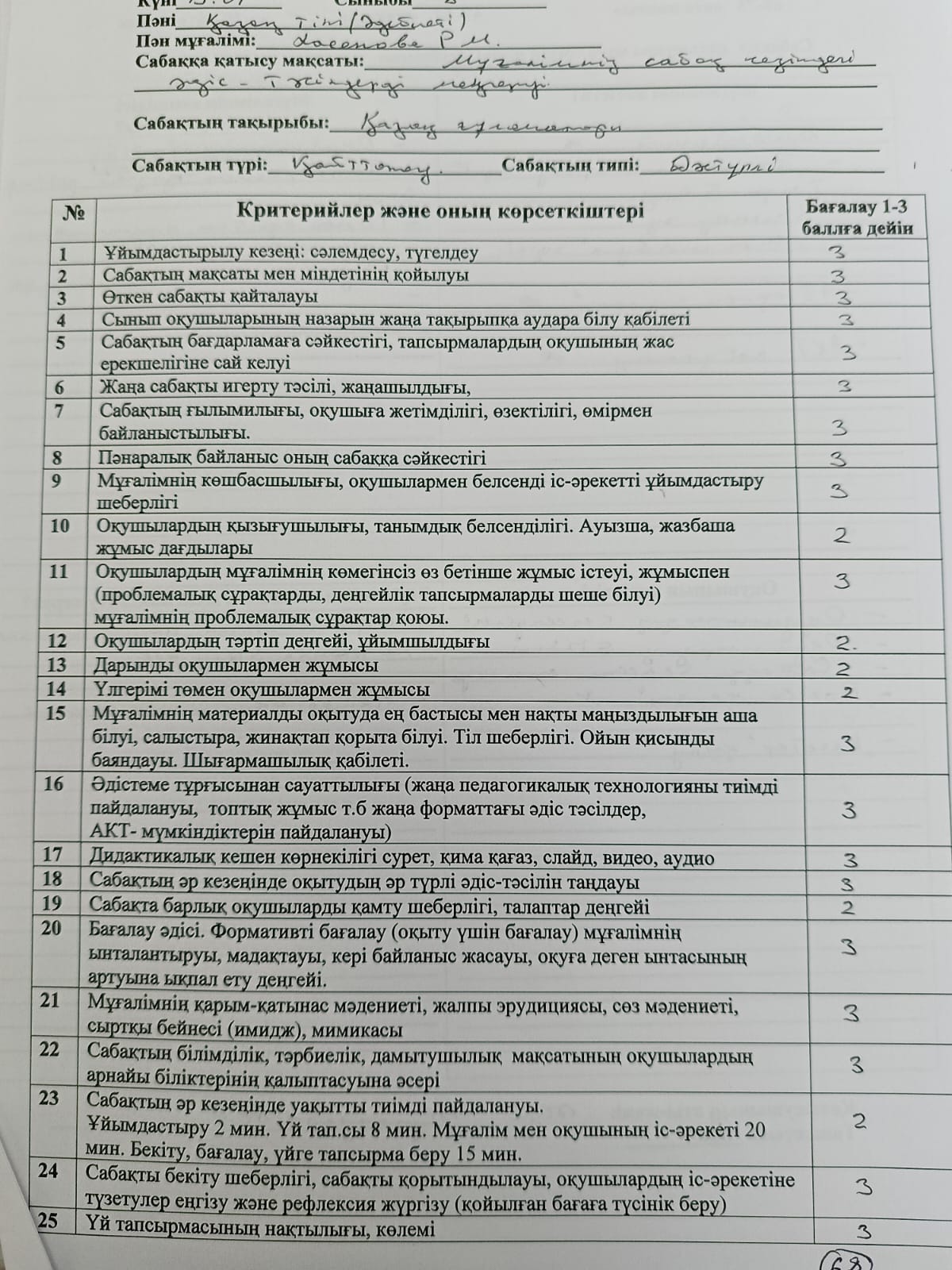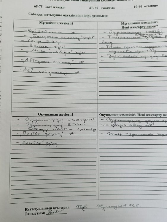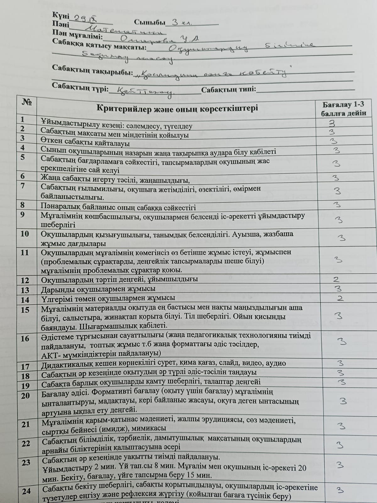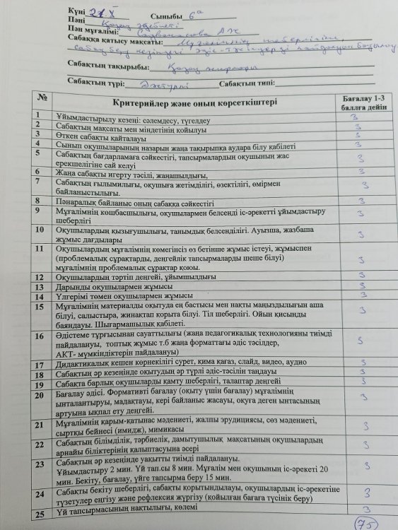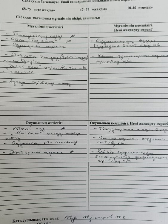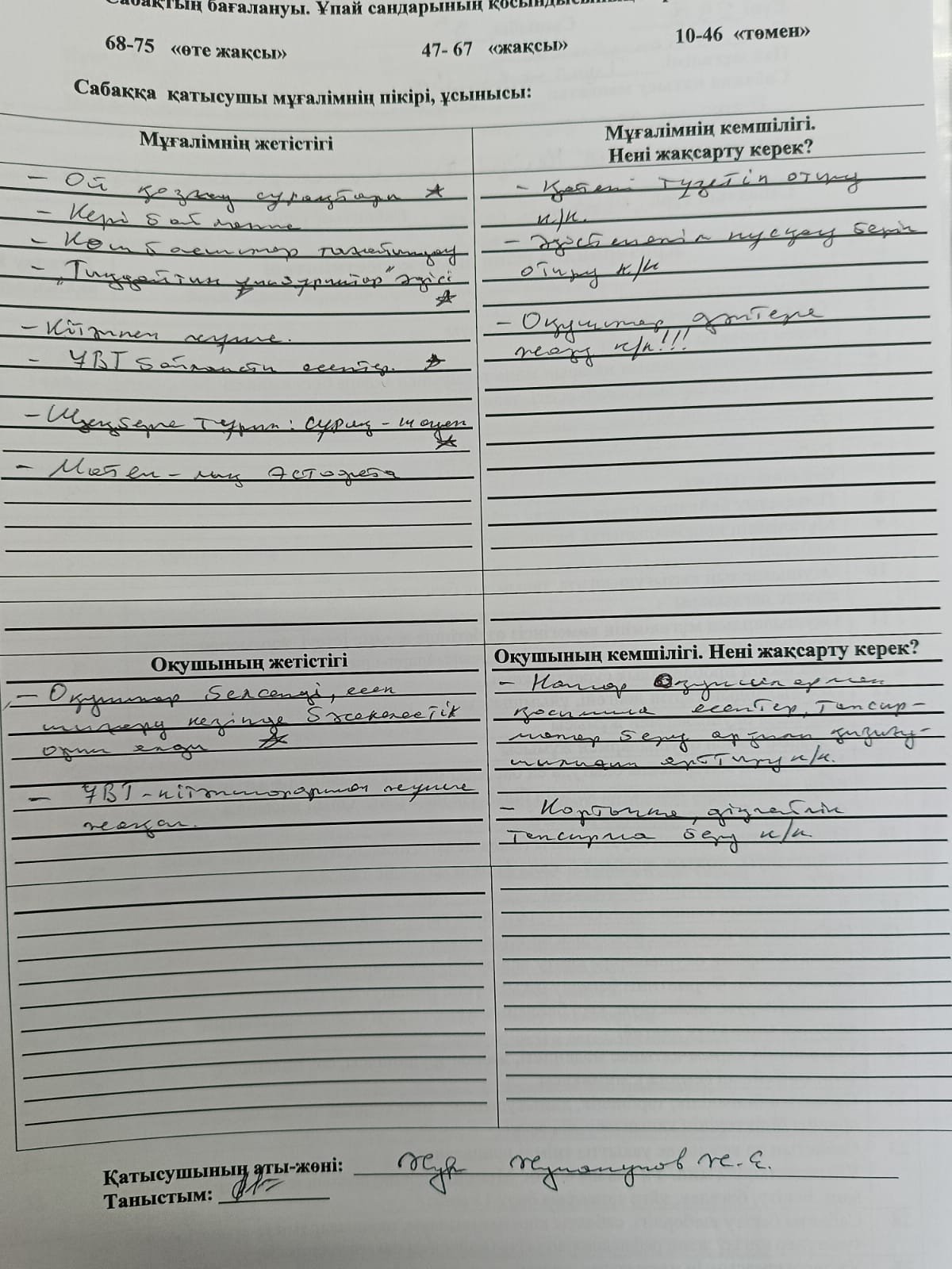 Мектеп директоры Жумакулов Жайк Елеукановичтің сабаққа қатысу парақтары
