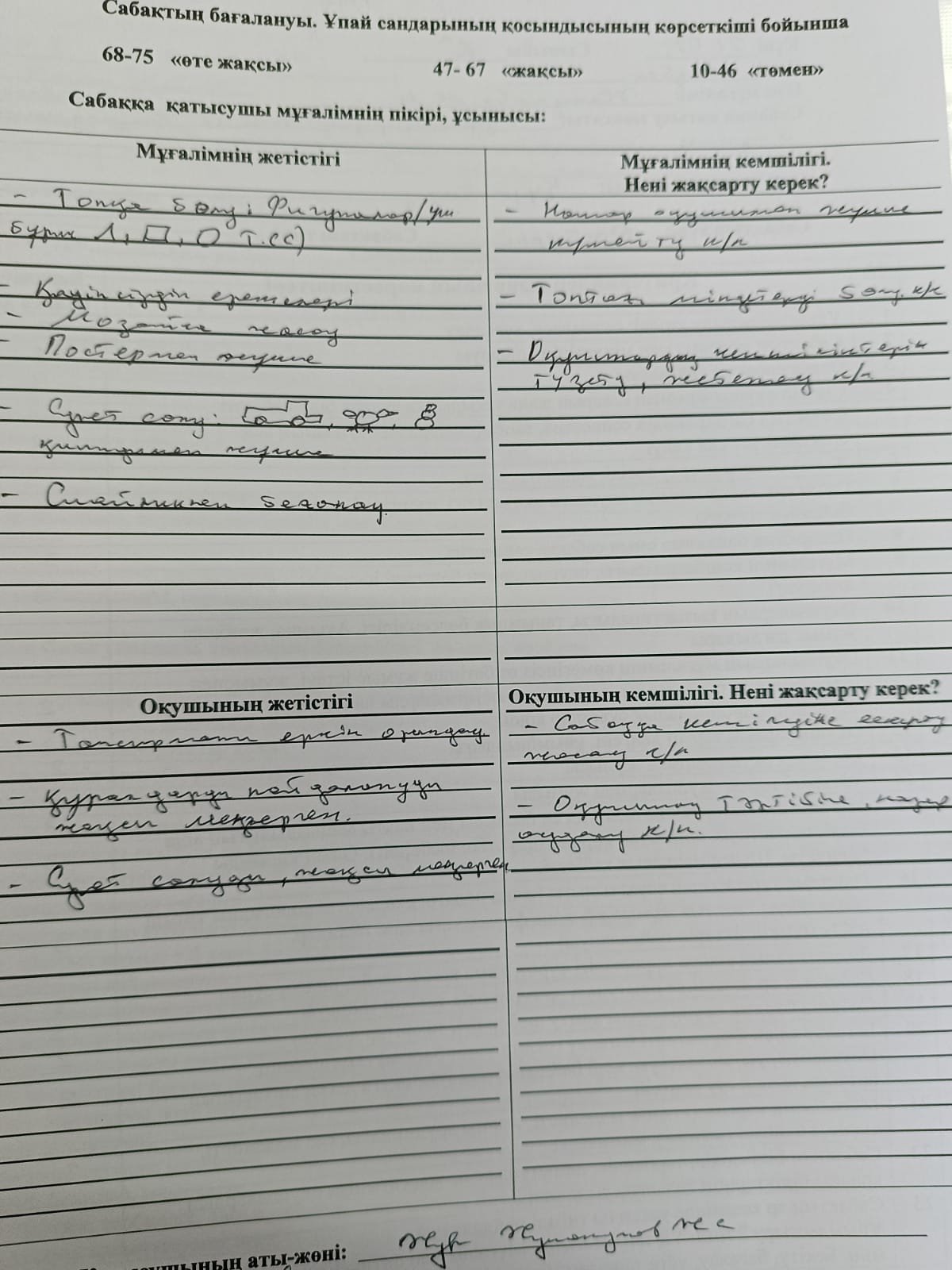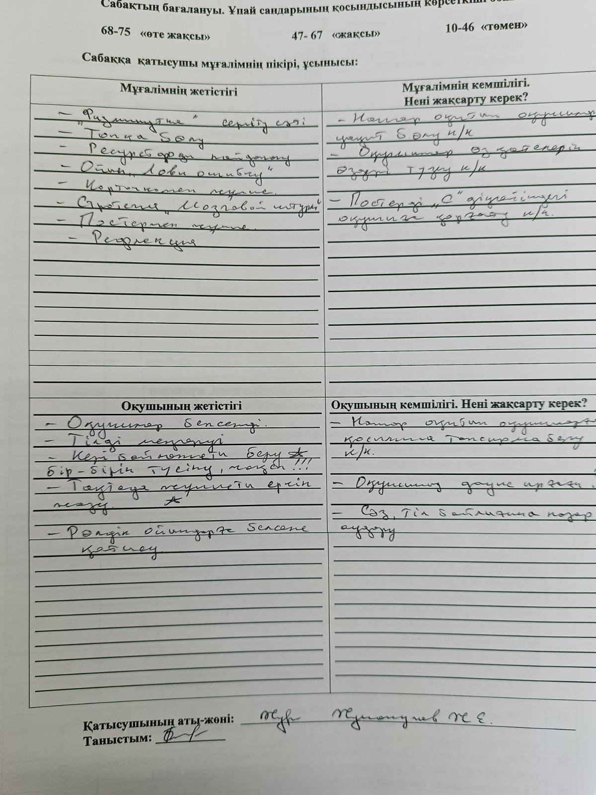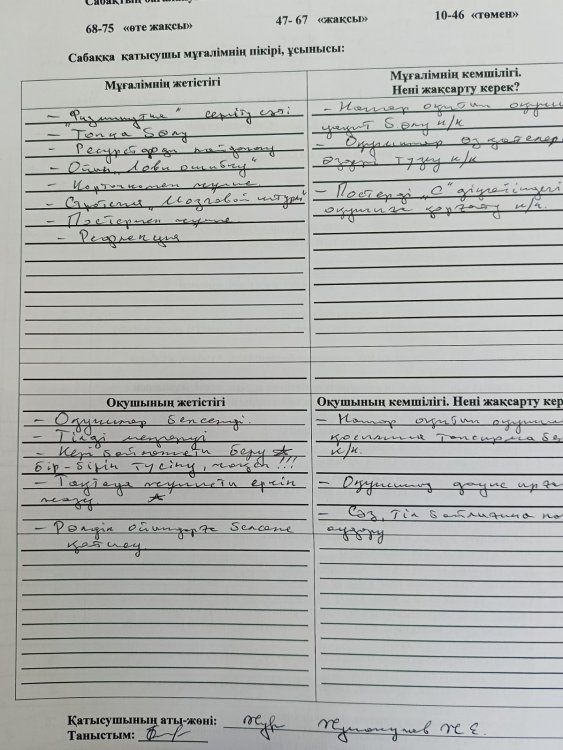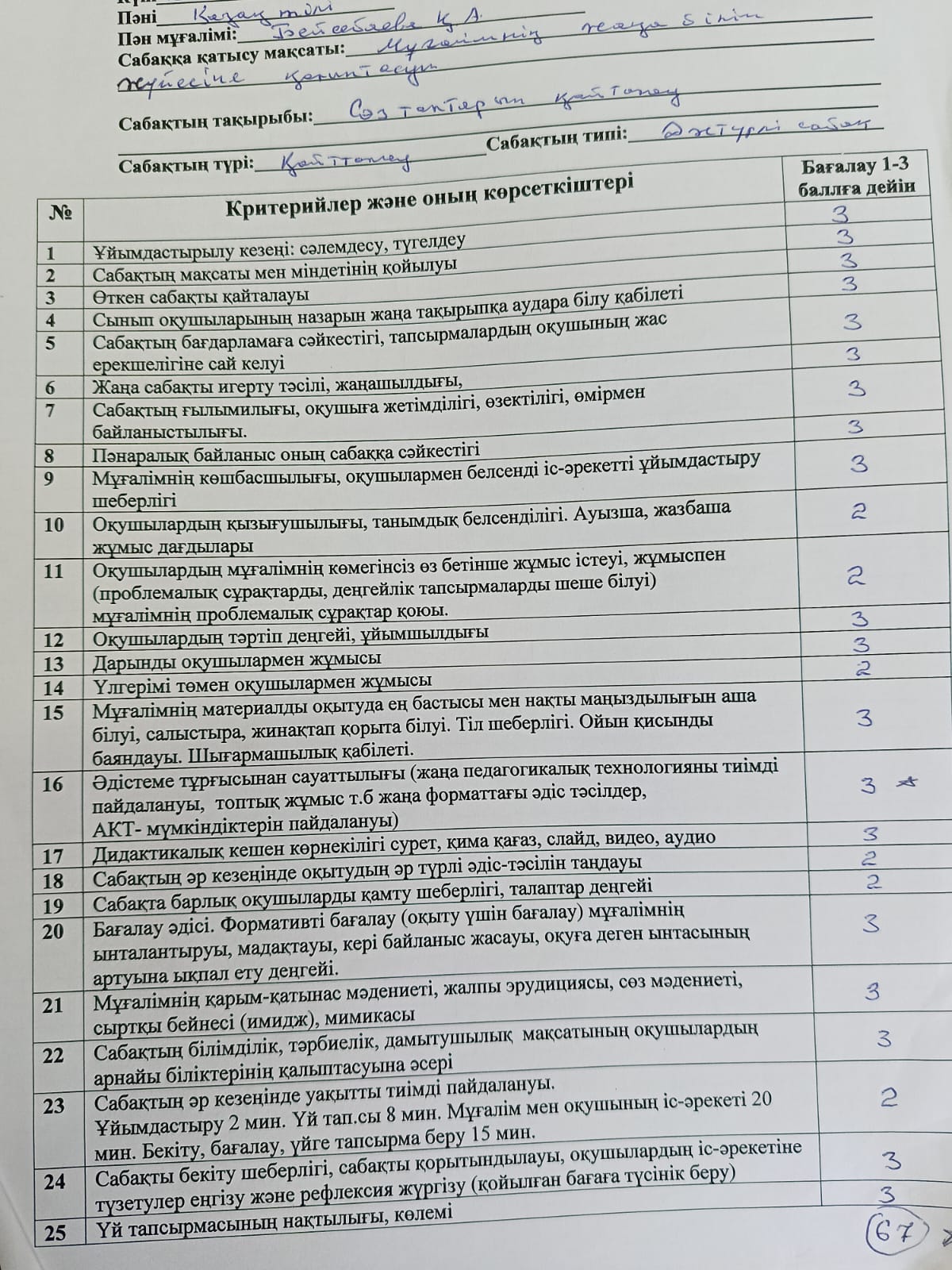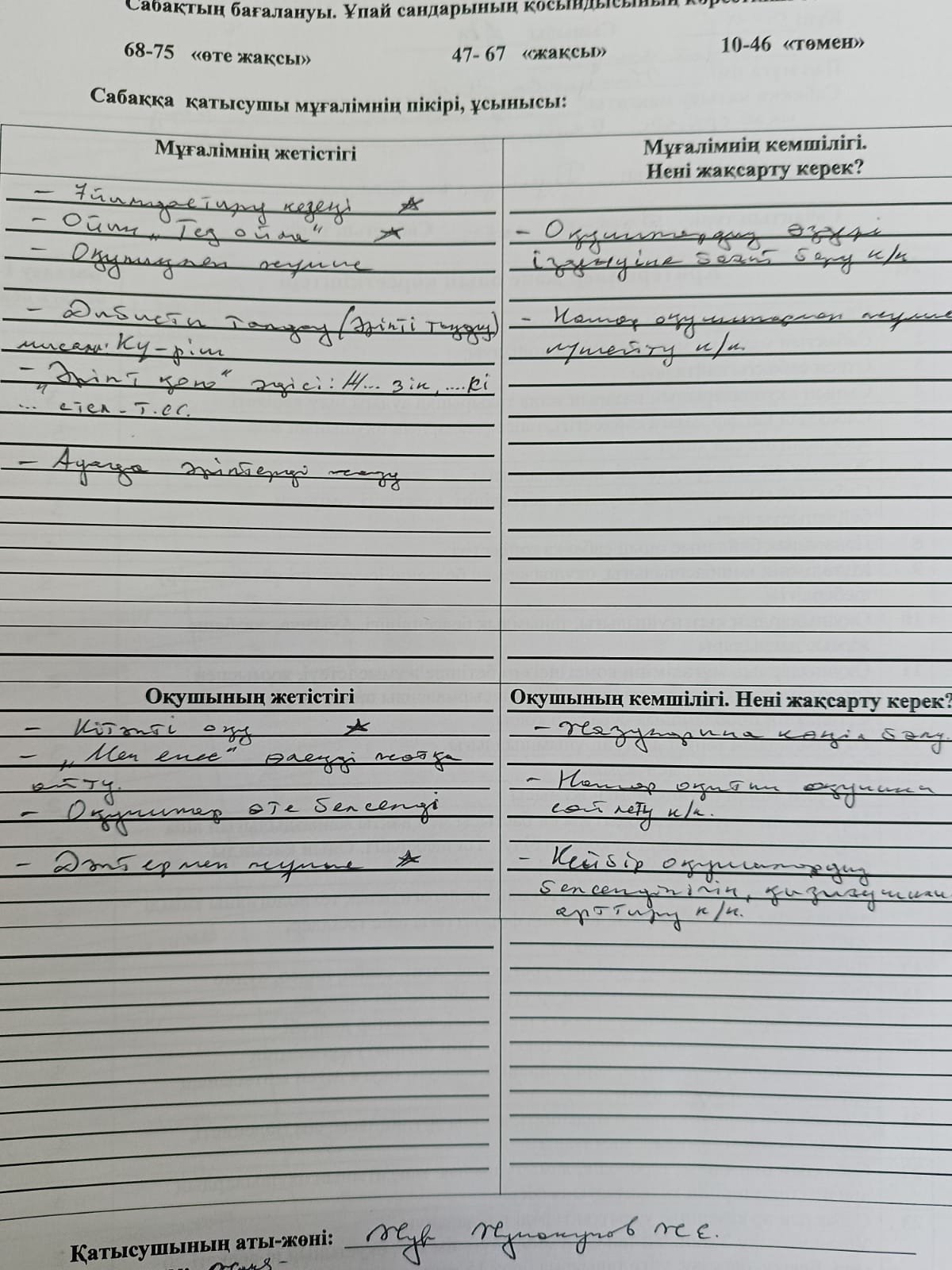 Мектеп директоры Жумакулов Жайк Елеукановичтің сабаққа қатысу парақтары