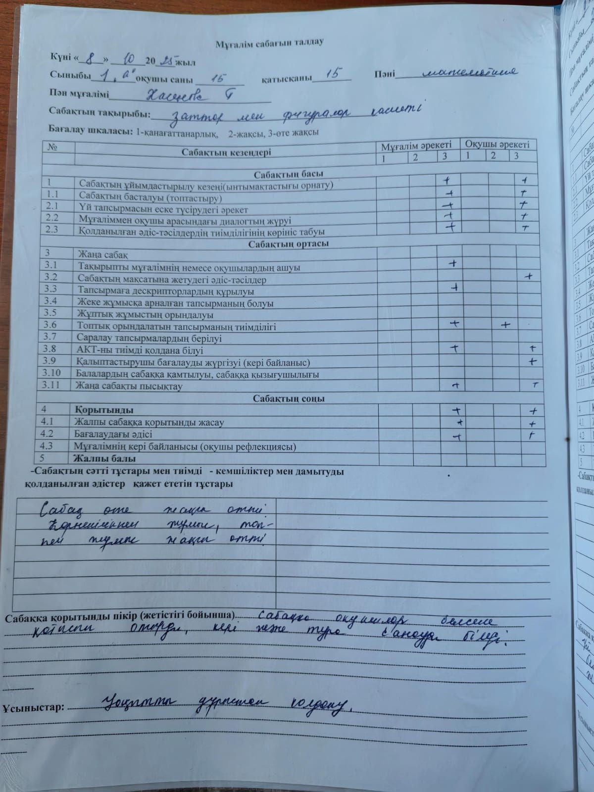 14 ноябрь 2025 0 1 2 3 4 5 Директордың оқу ісі орынбасары Тусупбекова Гульназ Толеугазыевнаның сабаққа қатысу парақтары