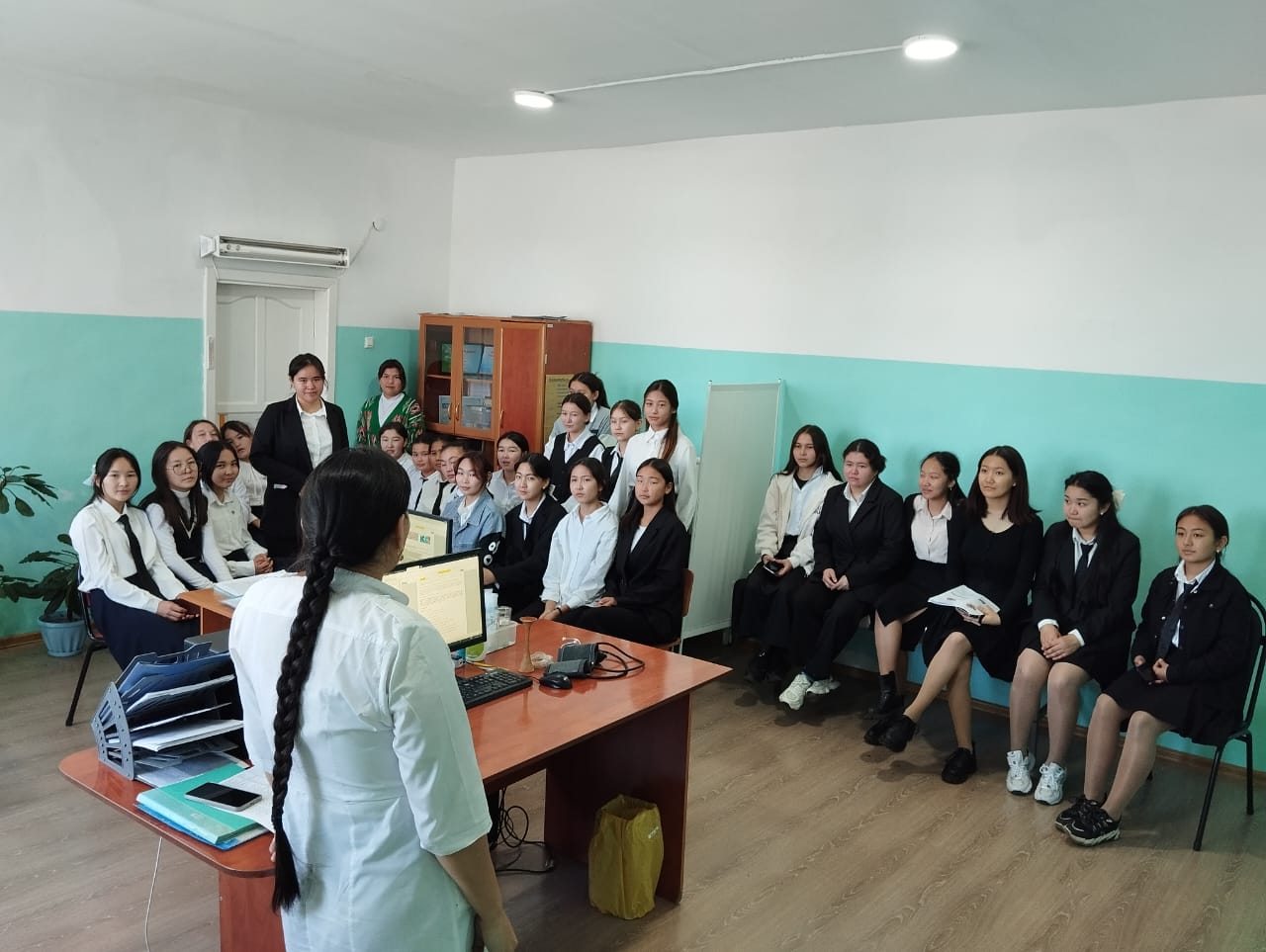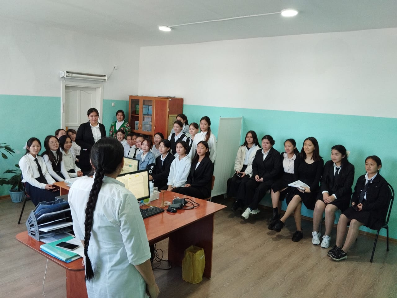 Кездесу барысында 9-11 сынып қыздарына гигиеналық талаптар туралы кеңес берілді. Оқушылар өздерін толғандырған сұрақтарын қойды.