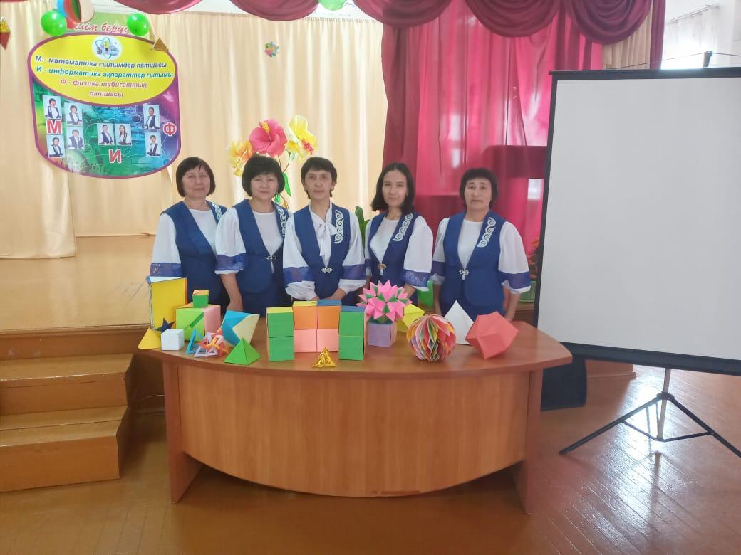 "Ахмет Байтұрсынұлы атындағы орта мектебі" КММ-де математика, информатика және физика пән бірлестігінің "МИФ- нақты ғылымдар әлемі" атты апталықтың екінші күнінде "Фигуралар сөйлейді" айдарымен жасалынған макеттердің қасиеттері мен жасалу жолдарын түсіндіріп өтті. Қорғау барысында алдын ала дайындалған фигуралардың жасалу сәтінен видео үзінді көрсетті. 8 және 10 сынып оқушыларының оригами тәсілімен жасалған фигуралары сәтті болды.