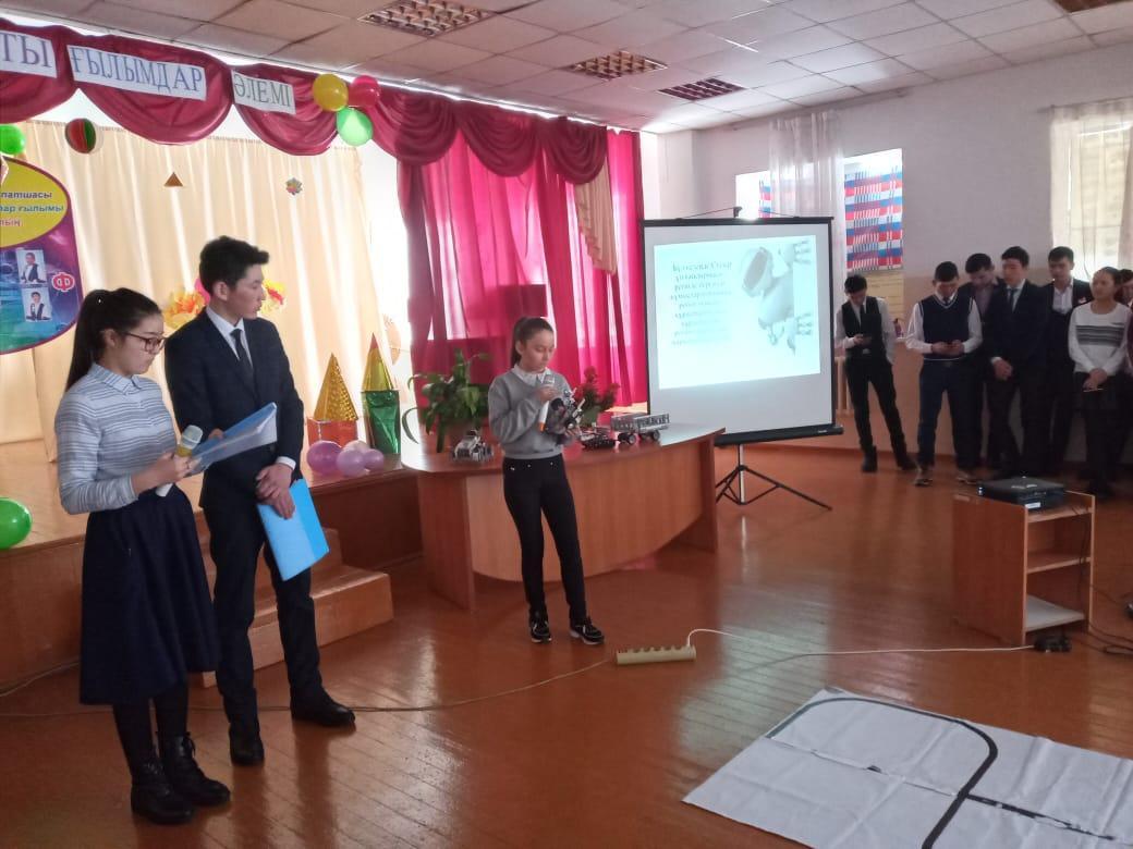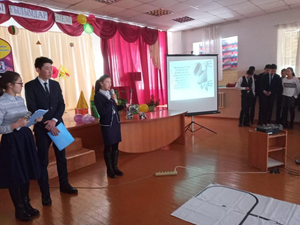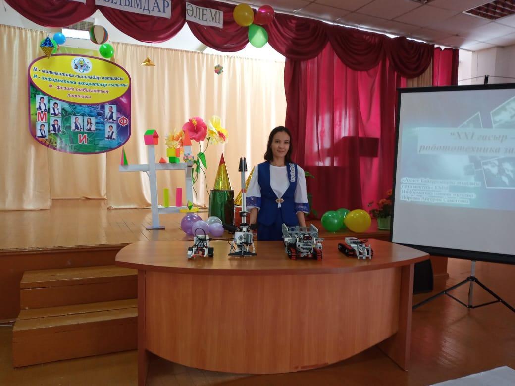 "Ахмет Байтұрсынұлы атындағы орта мектебі" КММ-де математика, информатика және физика пән бірлестігінің "МИФ- нақты ғылымдар әлемі" атты апталықтың үшінші күні информатика пәніне арналып, "ХХІ ғасыр - робототехника заманы" атауымен ертеңгілік өткізілді. Ертеңгілікте І кезең ретінде робототехника курсынан блиц- сұрақтар қойылды. Бұл әдіс оқушылардың миына шабуыл ретінде тез әрі дұрыс жауап беру мақсатында қолданылды. ІІ кезеңде "Жарнамалау", яғни үйге берілген тапсырма ретінде робот макетін жасау болған. Бұл кезең бойынша роботтарын жасап әкелген 10"а", 9 "а", 7 "а" және 7 "б" сыныптары. Роботтарын жүргізіп оқушылар мен ұстаздарға көрсетілім жасады. ІІІ кезең "Кино атауын тап". Соңғы ІІІ кезеңде роботтарға байланысты түсірілген 6 фильмнің сюжетінен үзінді оқылды. Берілген сұрақтарға оқушылар жақсы жауап берді.