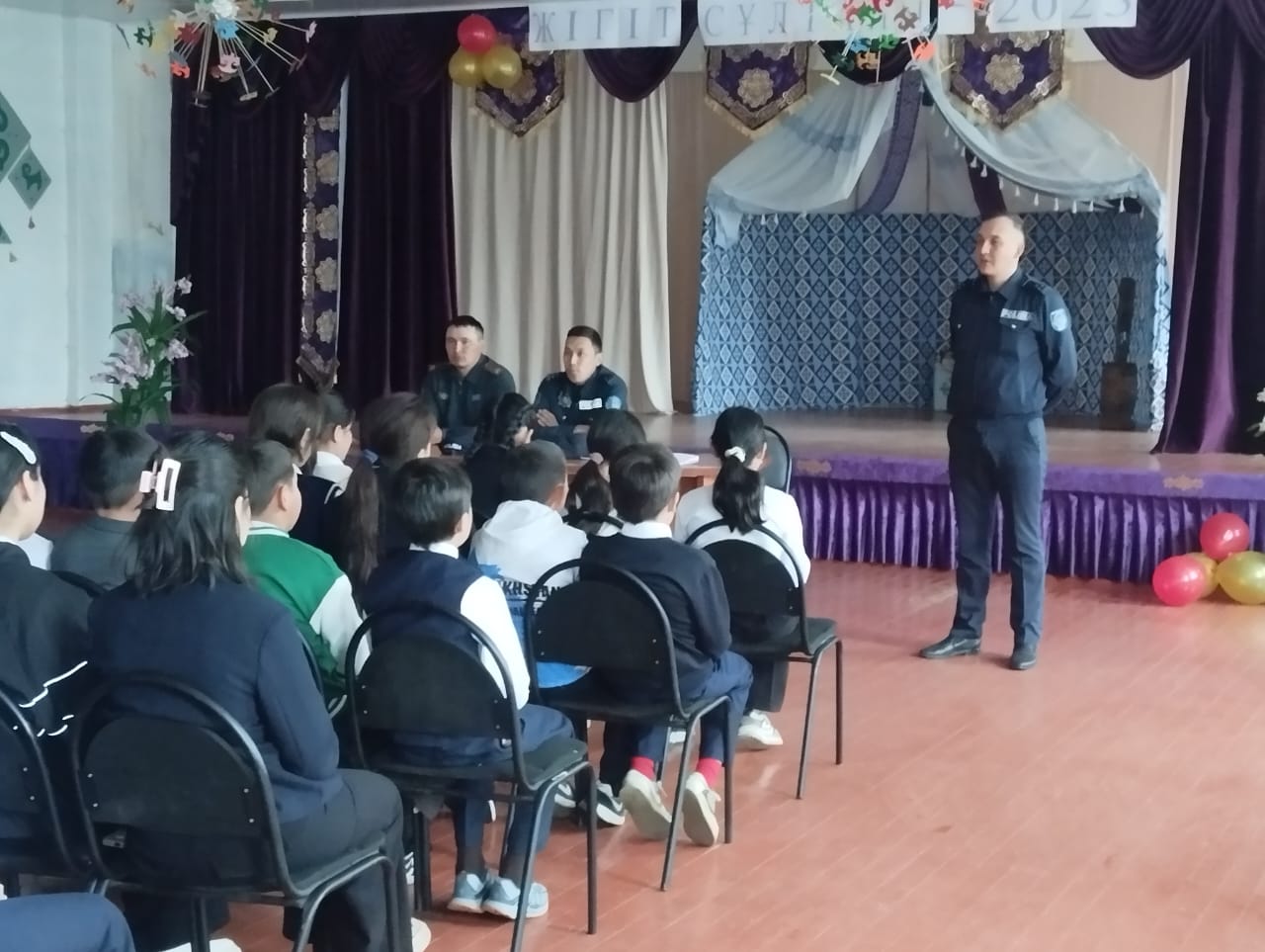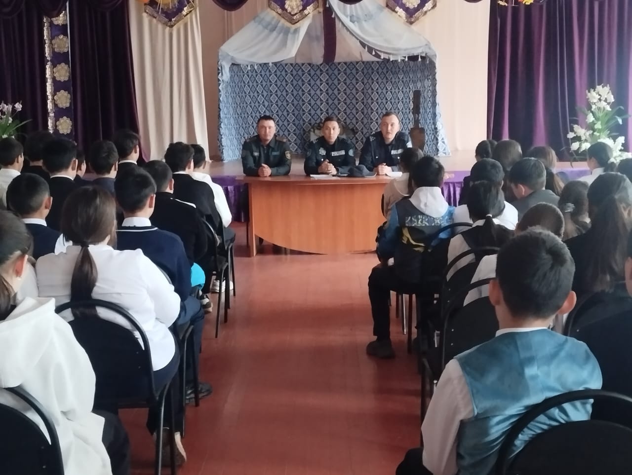 "Ахмет Байтұрсынұлы атындағы орта мектебі" КММ - сі  «Алкаголь, темекі шегу, есірткінің қауіптері мен зардаптары» атты құқыққорғау органы қызметкерлерімен профилактикалық шара  өткізілді. Мектеп оқушыларына  зиянды әдеттерден аулақ болу, зиянды әдеттерден қорғана білу,  адам ағзасына кері әсерлері  туралы түсіндіру жұмыстары жүргізілді.