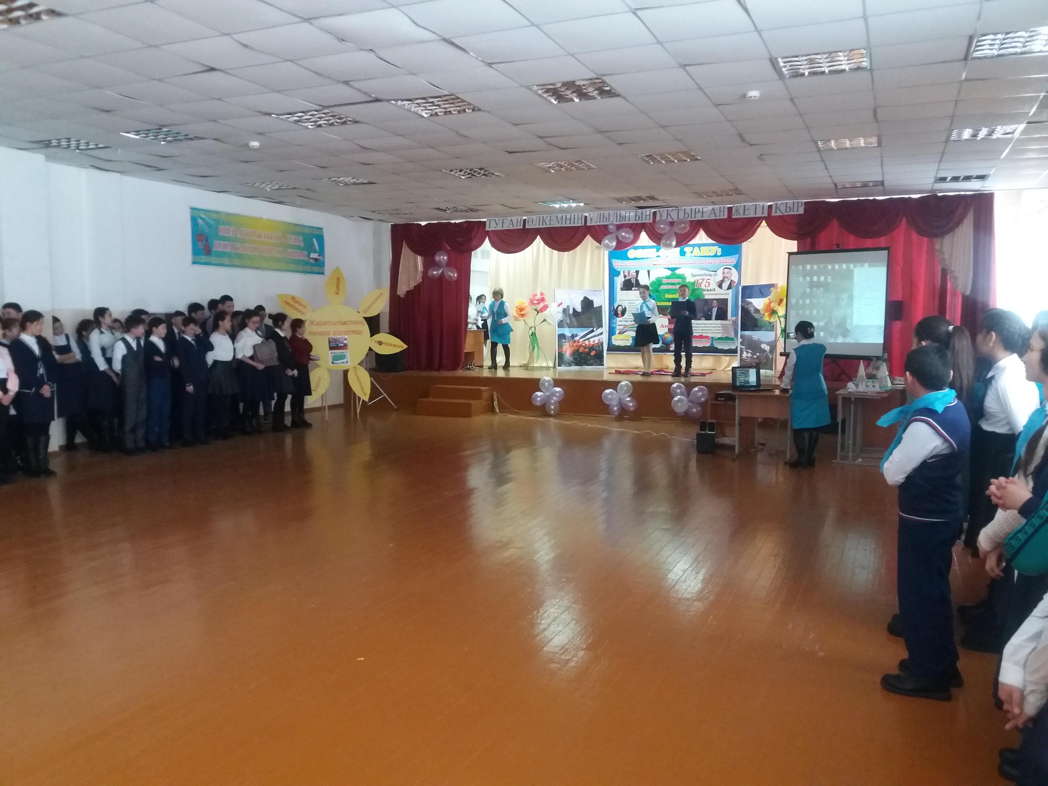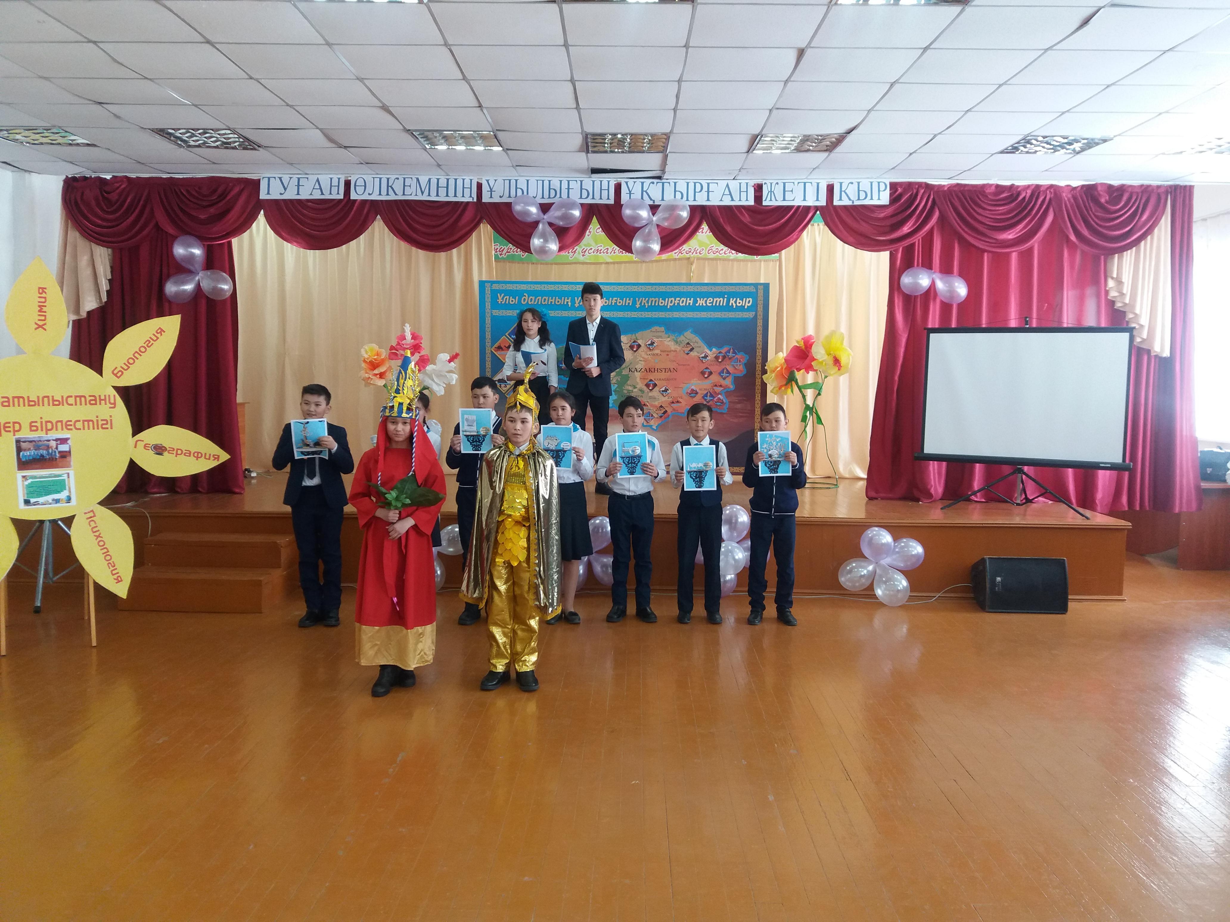 3-інші ақпанда онкүндіктің ашылу салтанатты жиыны өтті. Шара барысында оқушылар Елбасының жеті қыр туралы мақаласын негізге ала отырып, әр пәннің ерекшеліктерін айтып, туған жермен байланыстыра таныстырды.