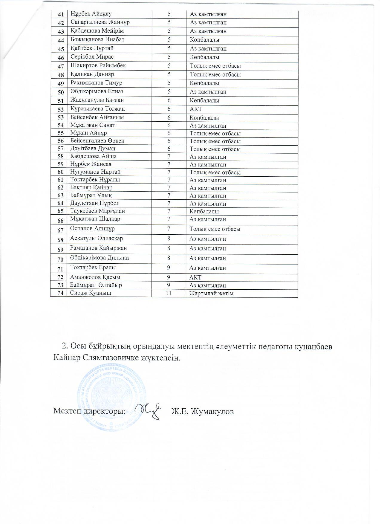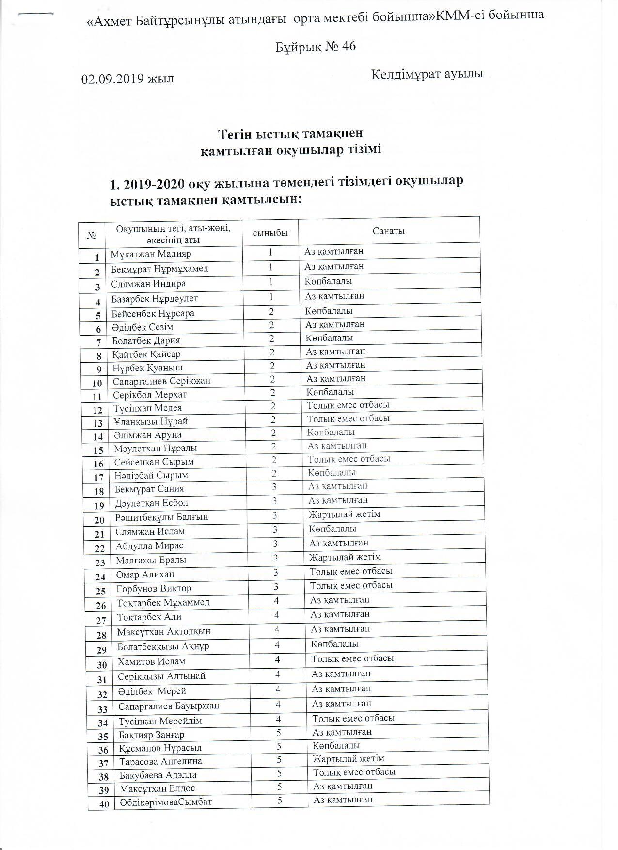 26 ноябрь 2019 0 1 2 3 4 5 Тегін ыстық тамақпен және сүтпен қамтылған оқушылар тізімі Теги: Тамақтандыру