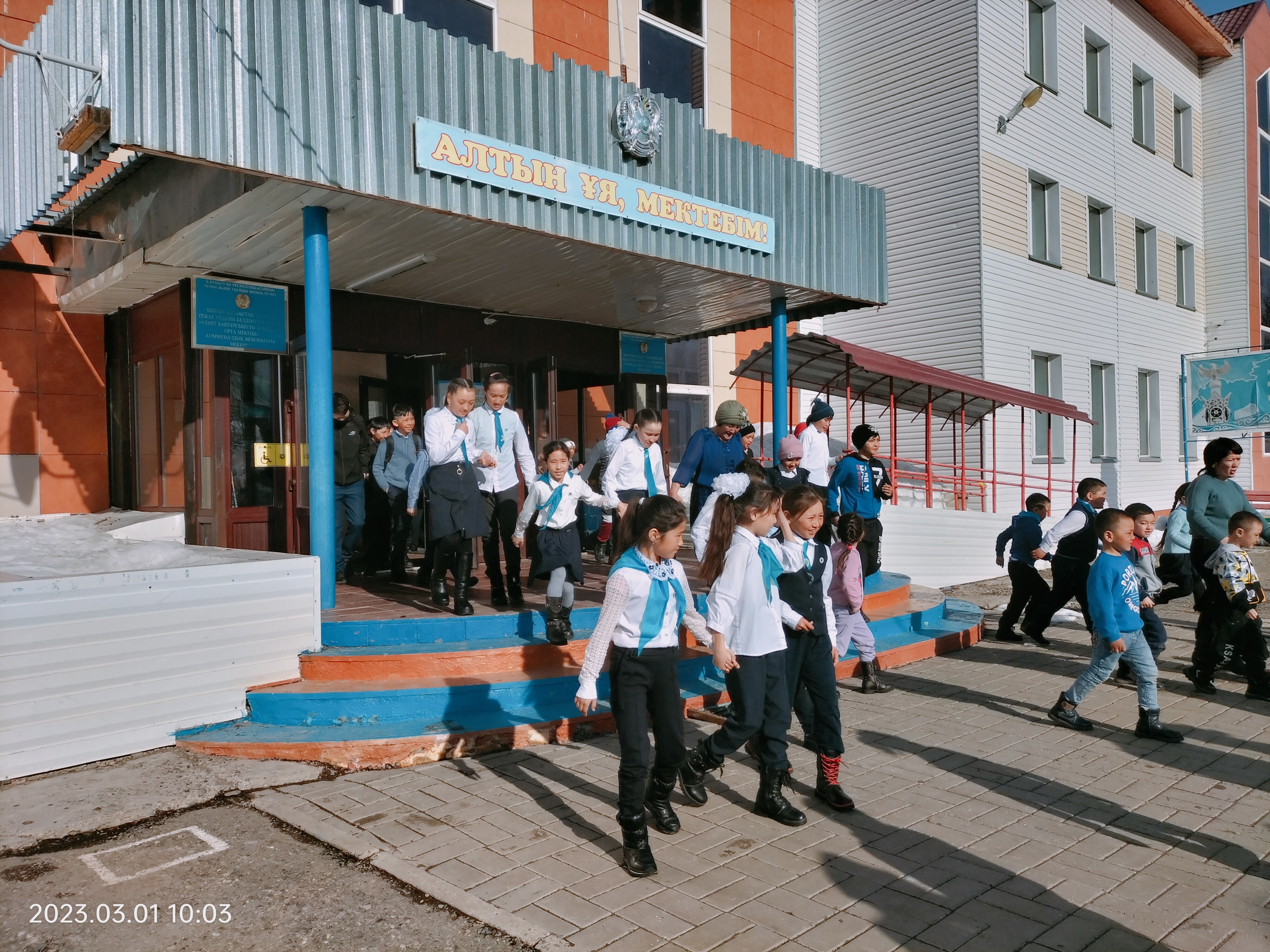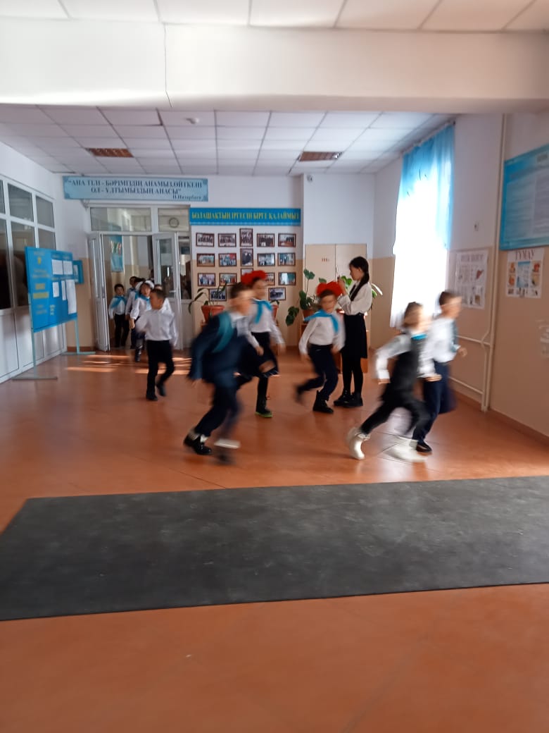сағат 9-55 минутта дабыл қоңырауы соғылды. Барлық мектеп ғимаратындағы оқушылар, ұстаздар, қызметкерлер эвуакацияланды.
