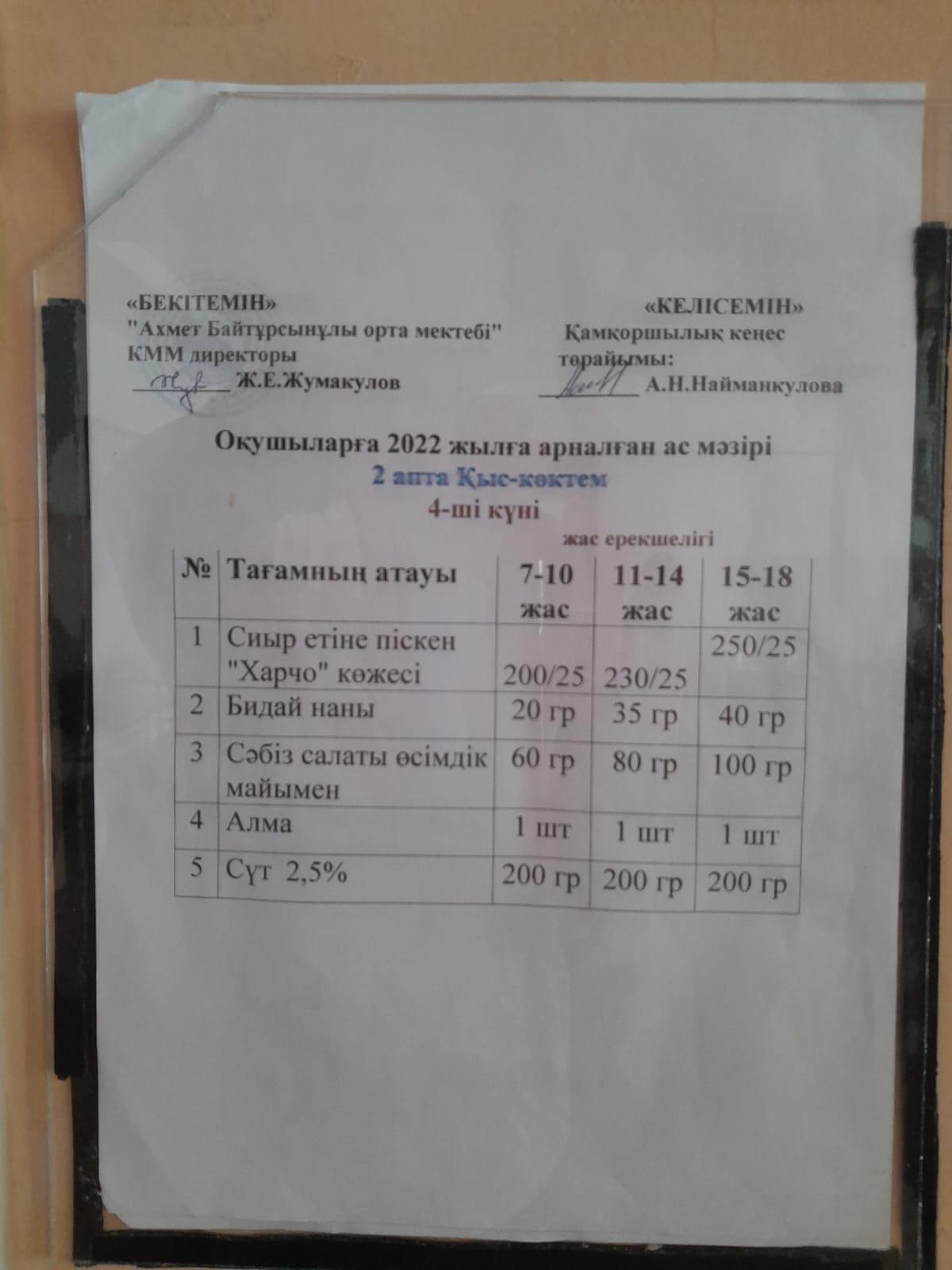 Күнделікті ас мәзірі 10.11.2022 жыл » Абай облысы білім басқармасы Мақаншы ауданы білім бөлімінің "Ахмет Байтұрсынұлы атындағы орта мектебі" КММ