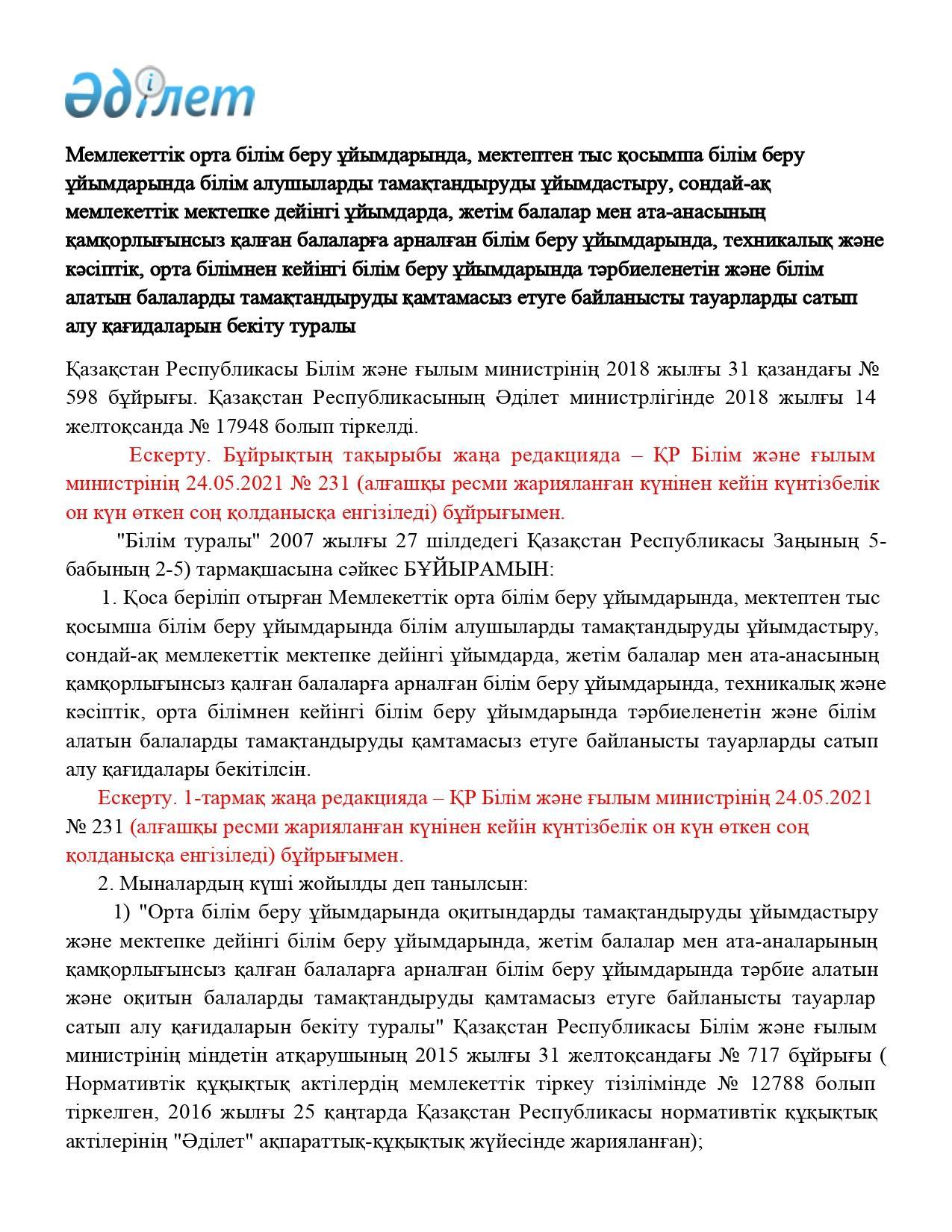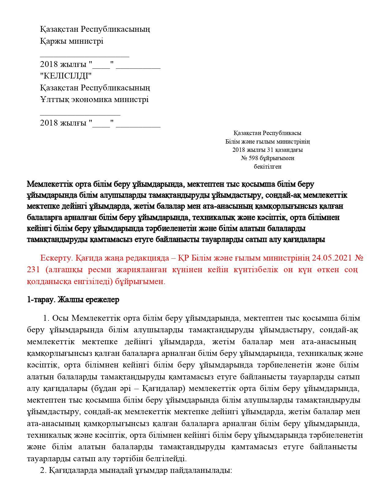 14 ноябрь 2022 0 1 2 3 4 5 Қазақстан Республикасы Білім және ғылым министрінің 2018 жылғы 31 қазандағы № 598 бұйрығы