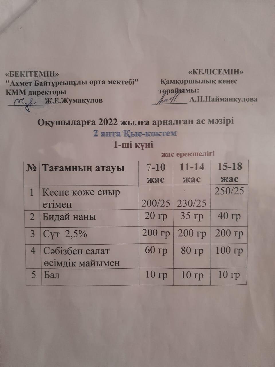 Күнделікті ас мәзірі 19.12.2022 » Абай облысы білім басқармасы Мақаншы ауданы білім бөлімінің "Ахмет Байтұрсынұлы атындағы орта мектебі" КММ