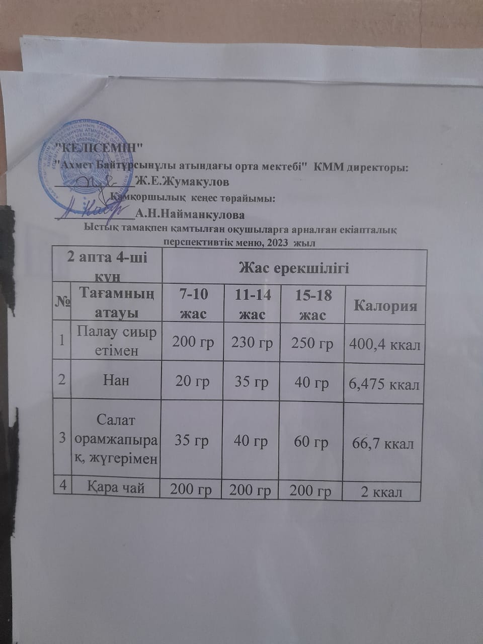 Күнделікті ас мәзірі 09.03.2023 » Абай облысы білім басқармасы Мақаншы ауданы білім бөлімінің "Ахмет Байтұрсынұлы атындағы орта мектебі" КММ