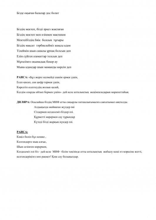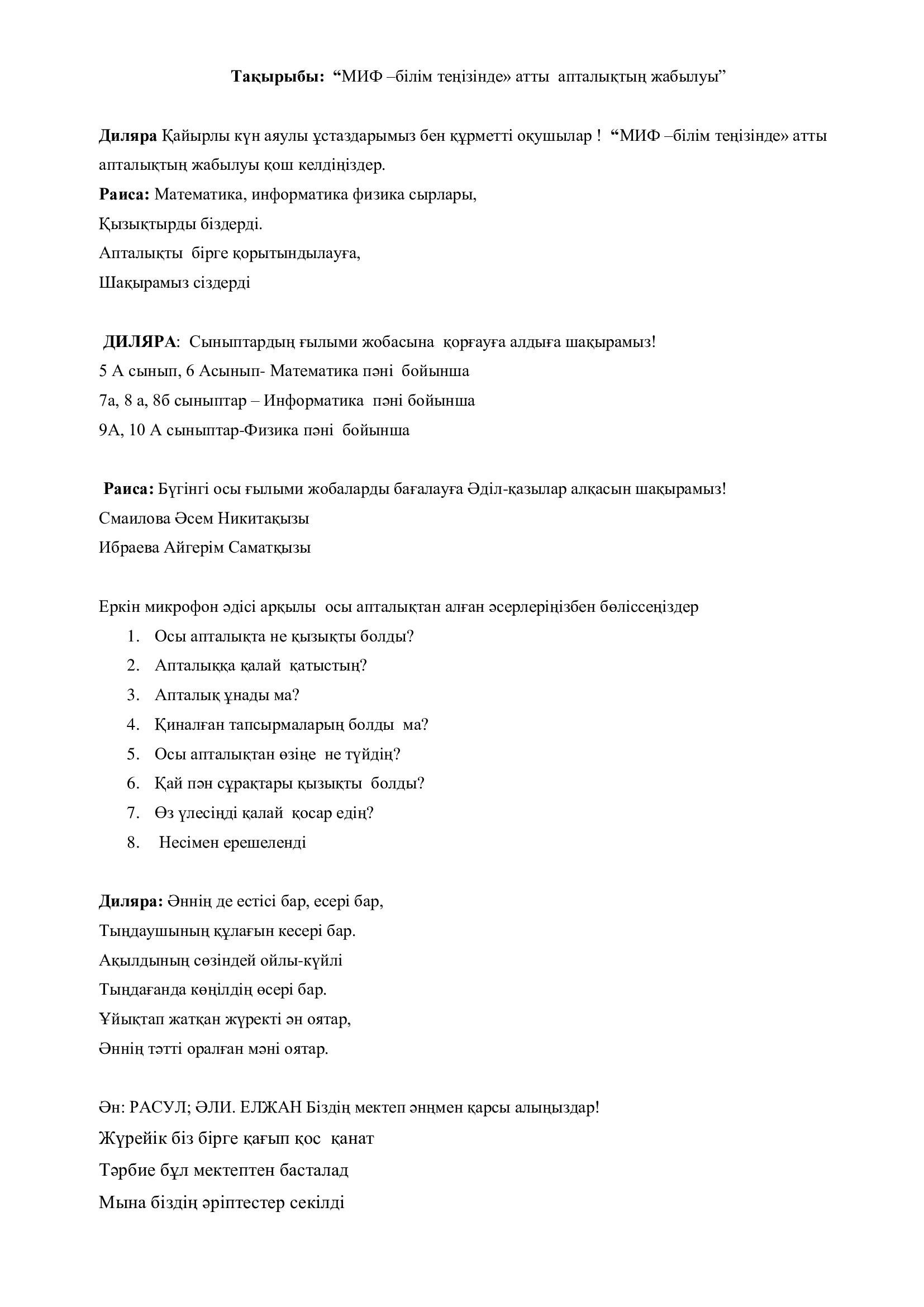 Тақырыбы: “МИФ –білім теңізінде» атты апталықтың жабылуы” » Абай облысы білім басқармасы Мақаншы ауданы білім бөлімінің "Ахмет Байтұрсынұлы атындағы орта мектебі" КММ