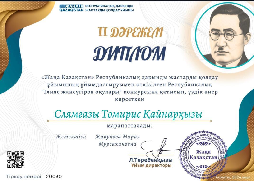 Ілияс Жансүгіров оқуларының жүлдегерлері » Абай облысы білім басқармасы Мақаншы ауданы білім бөлімінің "Ахмет Байтұрсынұлы атындағы орта мектебі" КММ