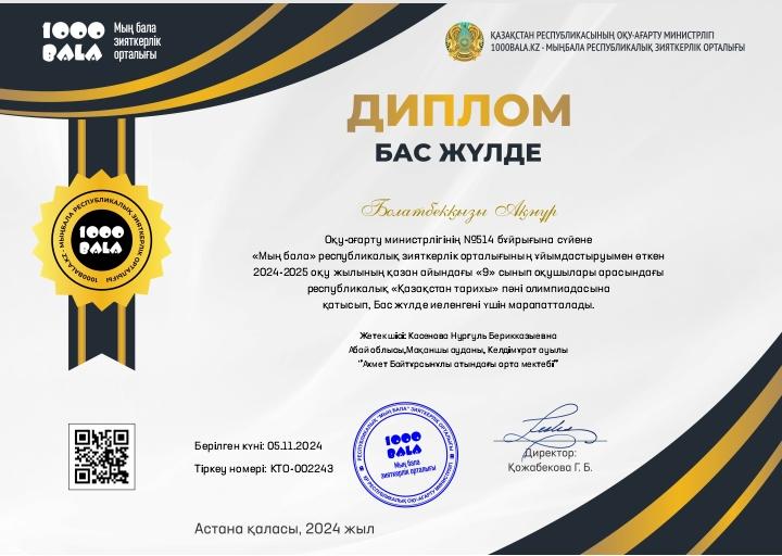 Жетістіктер » Абай облысы білім басқармасы Мақаншы ауданы білім бөлімінің "Ахмет Байтұрсынұлы атындағы орта мектебі" КММ