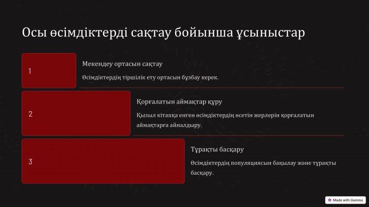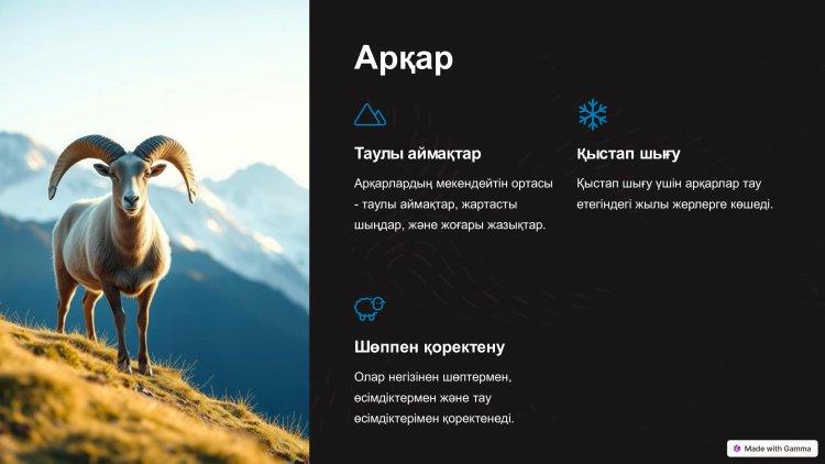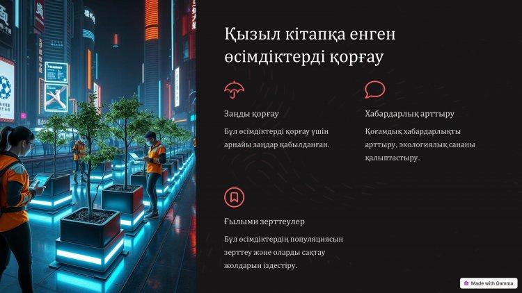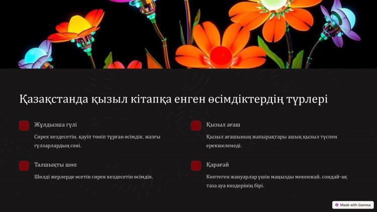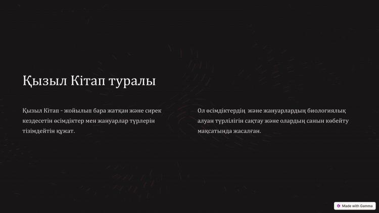 14 январь 2025 0 1 2 3 4 5 "Қызыл Кітапқа енгізілген жануарлар мен өсімдіктер" тақырыбында жасаған презентациясы.