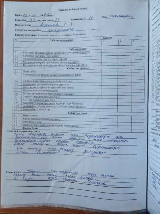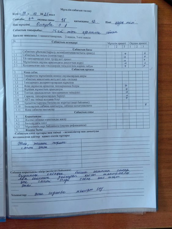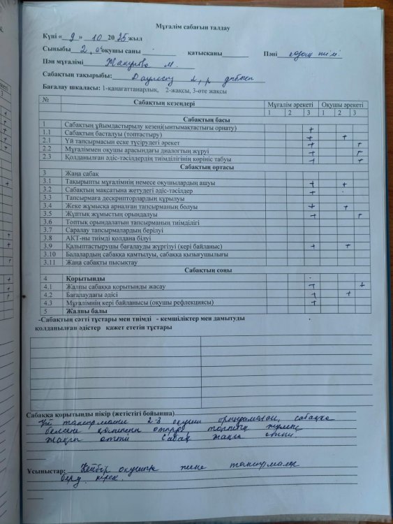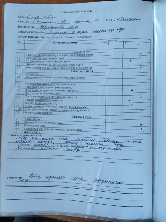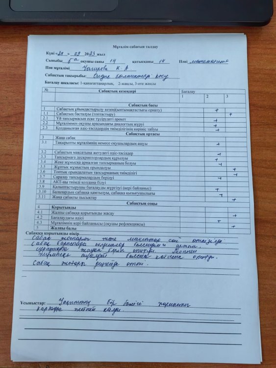 14 ноябрь 2025 0 1 2 3 4 5 Директордың оқу ісі орынбасары Тусупбекова Гульназ Толеугазыевнаның сабаққа қатысу парақтары