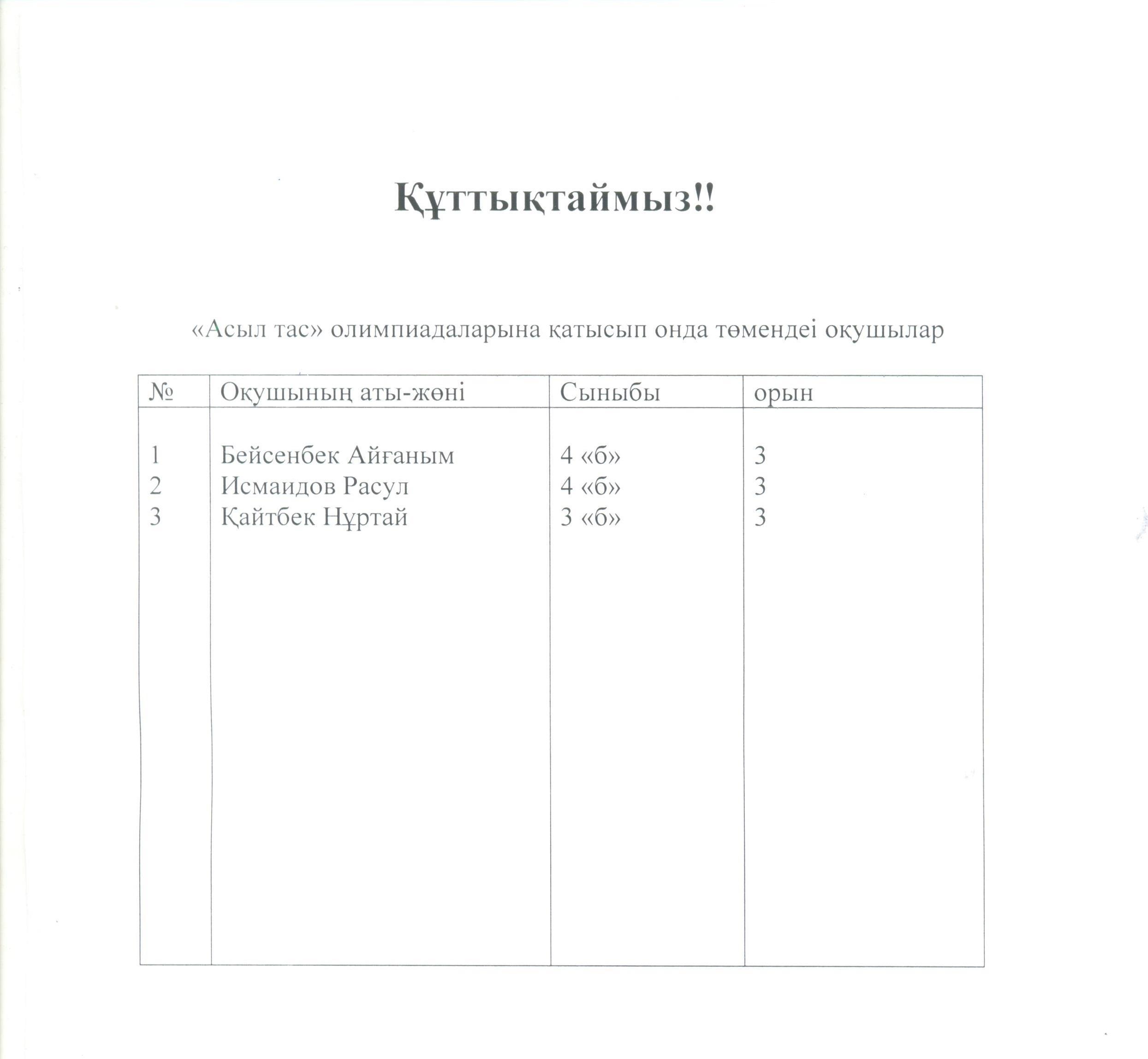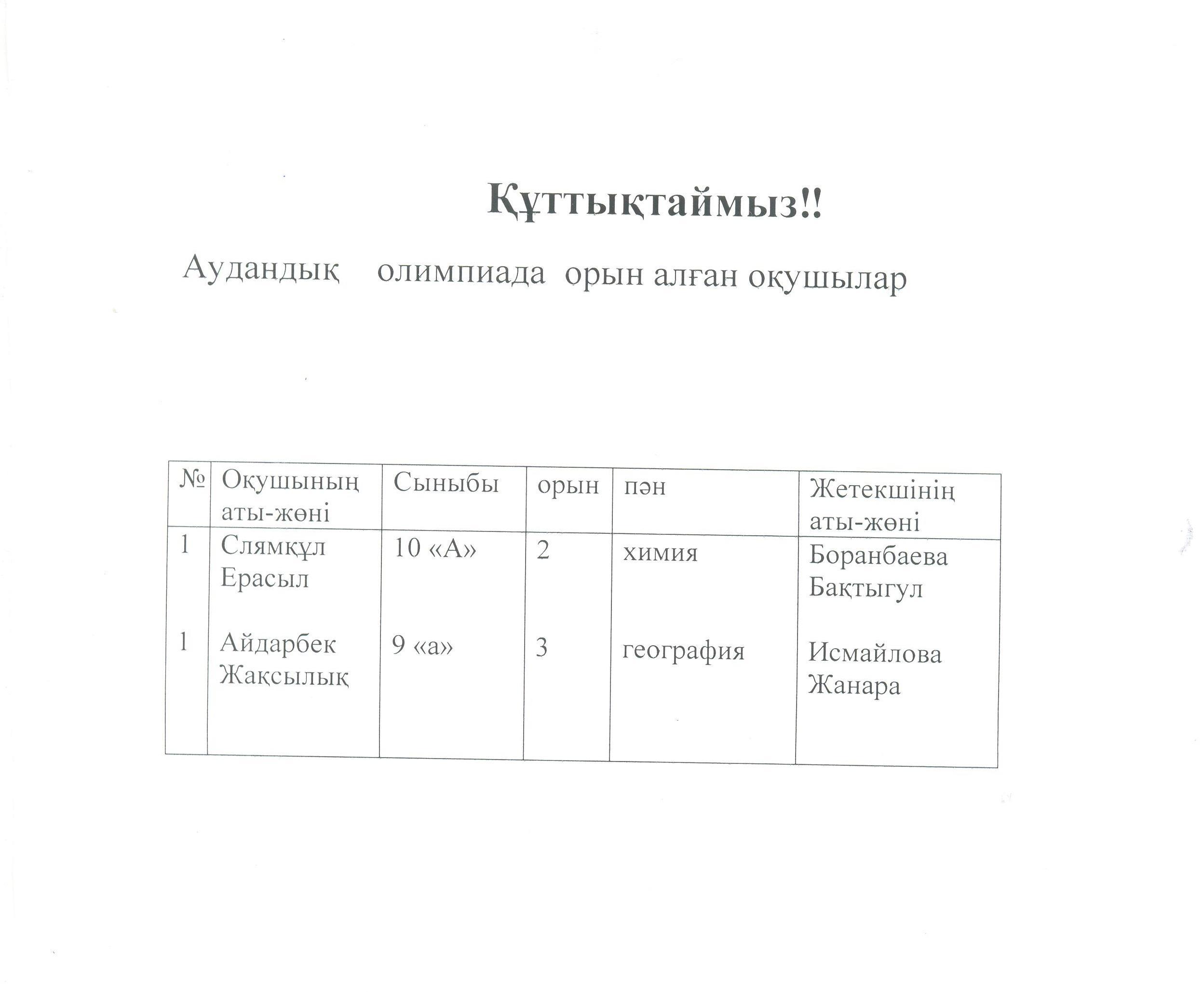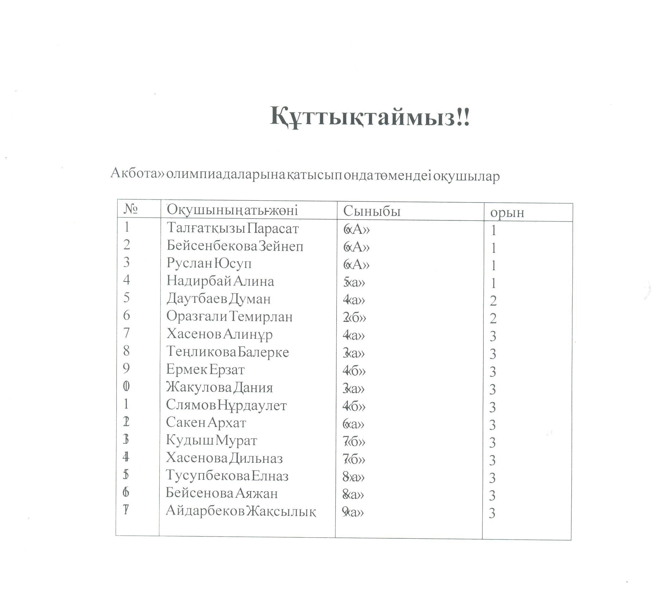 Олимпиада жетістіктері » Абай облысы білім басқармасы Мақаншы ауданы білім бөлімінің "Ахмет Байтұрсынұлы атындағы орта мектебі" КММ