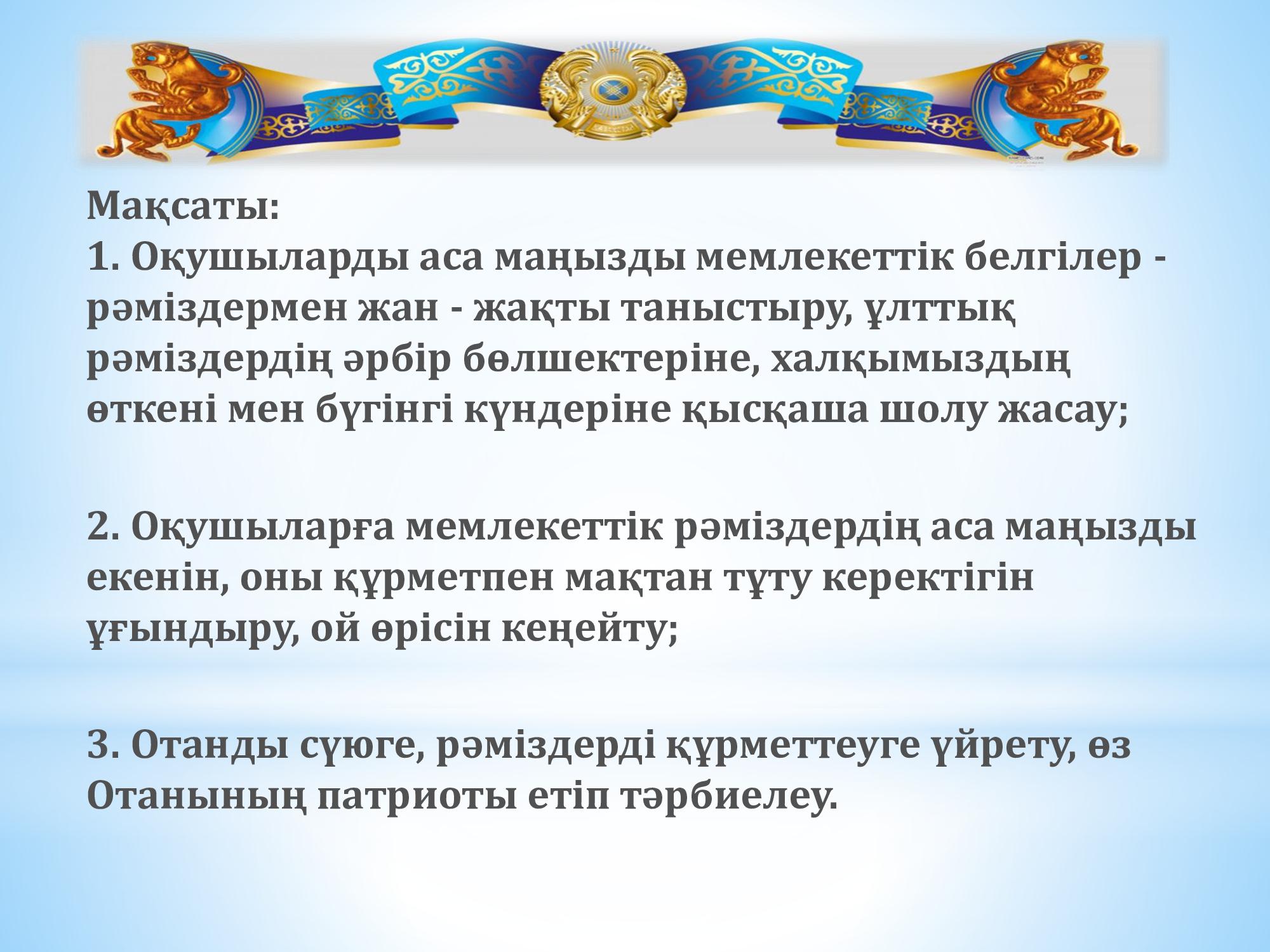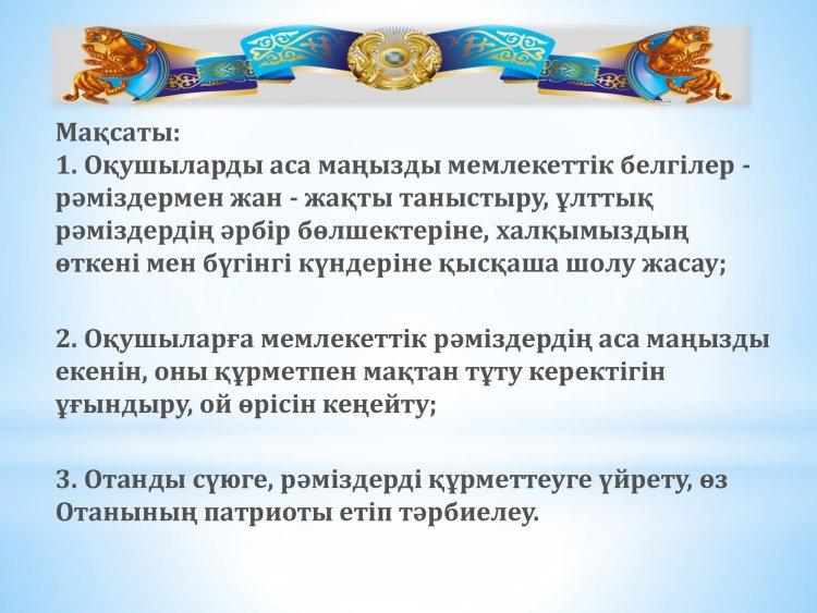 Государственные символы » Абай облысы білім басқармасы Мақаншы ауданы білім бөлімінің "Ахмет Байтұрсынұлы атындағы орта мектебі" КММ