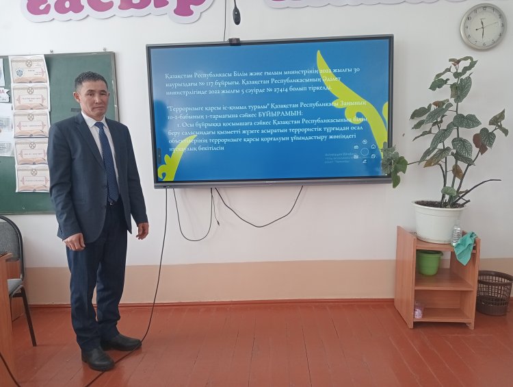 Абай облысы Мақаншы ауданы “Ахмет Байтұрсынұлы атындағы орта мектебі” КММ террористік тұрғыдан осал объектілерінің терроризмге қарсы қорғалуын ұйымдастыру жұмыстары жүргізілуде. Атап айтқанда: 1-11 сыныптар аралығында тәрбие сағаттары, персоналдар арасында түсіндіру және оқу-жаттығу жұмыстары жүргізілуде.