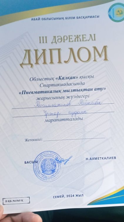 2. Хасенов Алинұр- пневматикалық мылтық атудан жүлдегер