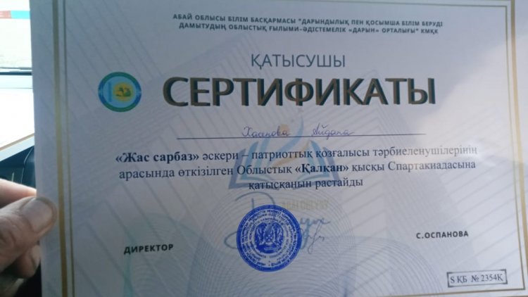 "Ахмет Байтұрсынұлы атындағы орта мектебі" КММ- сі Абай облыстық "Қалқан" әскери-патриоттық Спартакиадасына қатысып, үздік нәтижеге қол жеткізді.