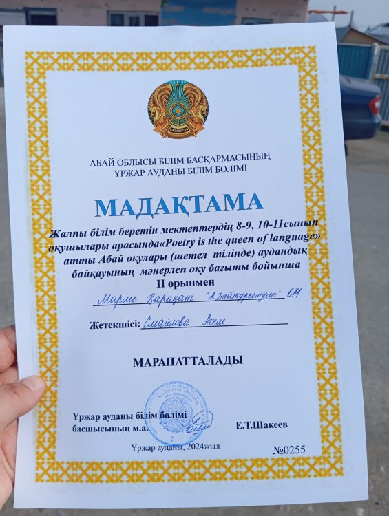 Жетістіктер » Абай облысы білім басқармасы Мақаншы ауданы білім бөлімінің "Ахмет Байтұрсынұлы атындағы орта мектебі" КММ