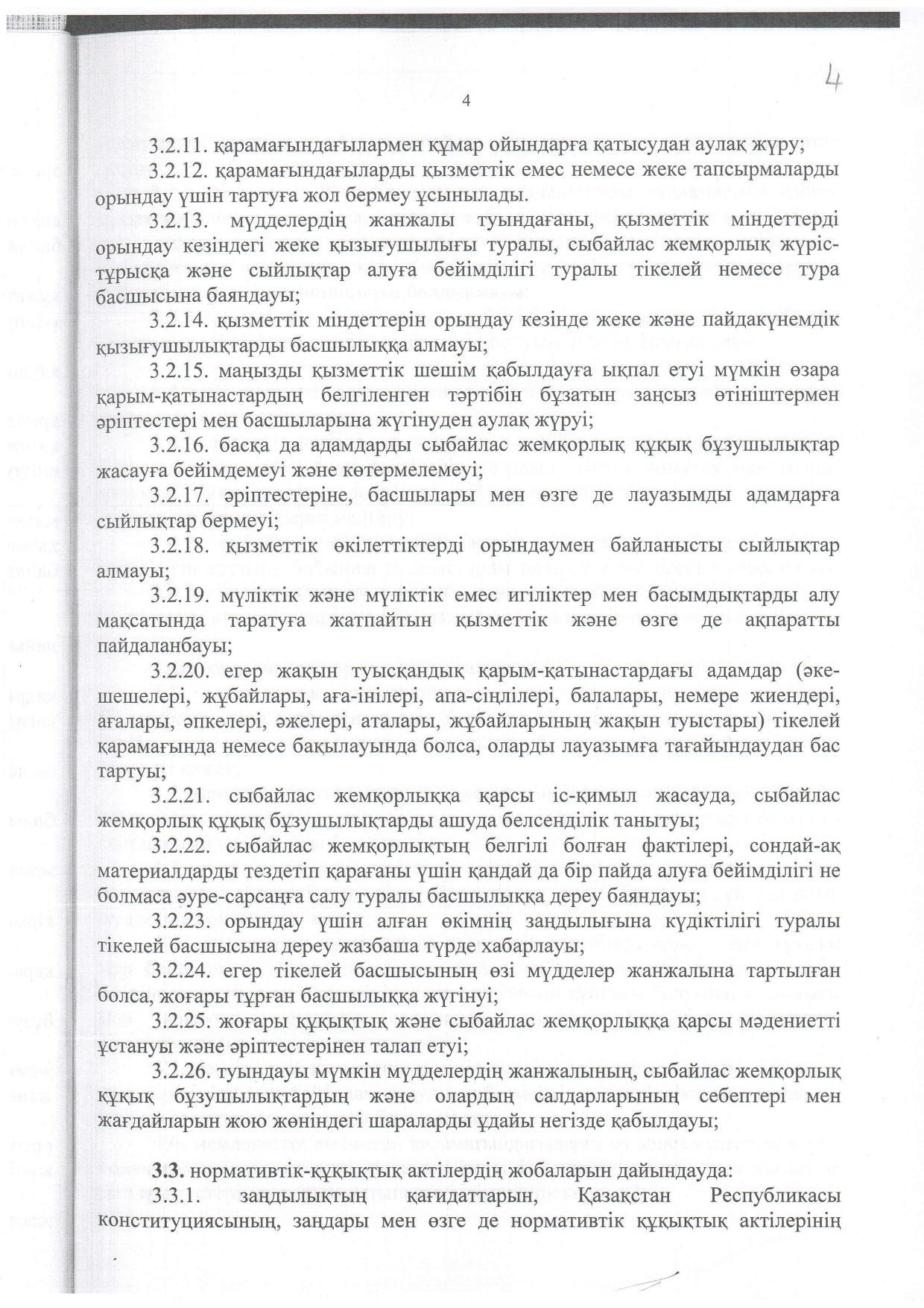 4. Осы баптың 1-тармағының бірінші абзацында аталған адамдардың сыбайлас жемқорлыққа қарсы