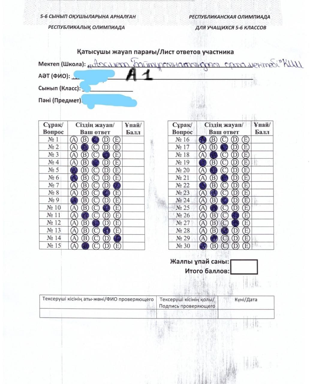 Аудандық олимпиада жұмысы. Жауап парағы » Абай облысы білім басқармасы Мақаншы ауданы білім бөлімінің "Ахмет Байтұрсынұлы атындағы орта мектебі" КММ