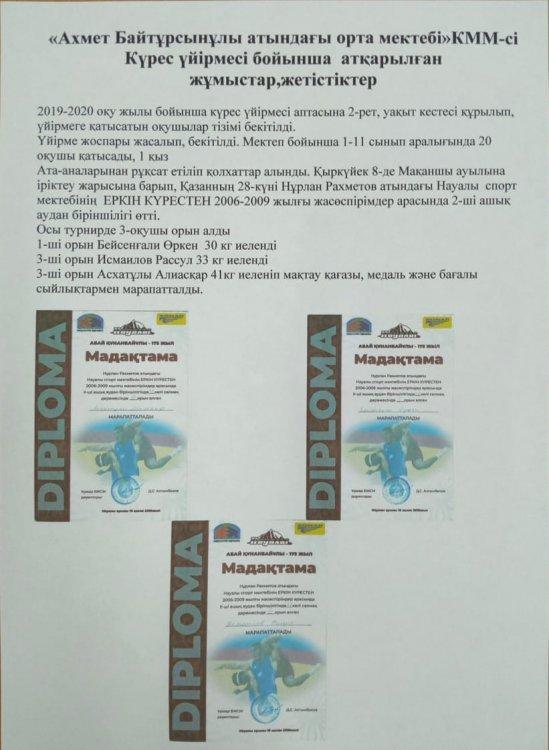 Оқушылар жетістіктері, үйірме туралы мәлімет » Абай облысы білім басқармасы Мақаншы ауданы білім бөлімінің "Ахмет Байтұрсынұлы атындағы орта мектебі" КММ