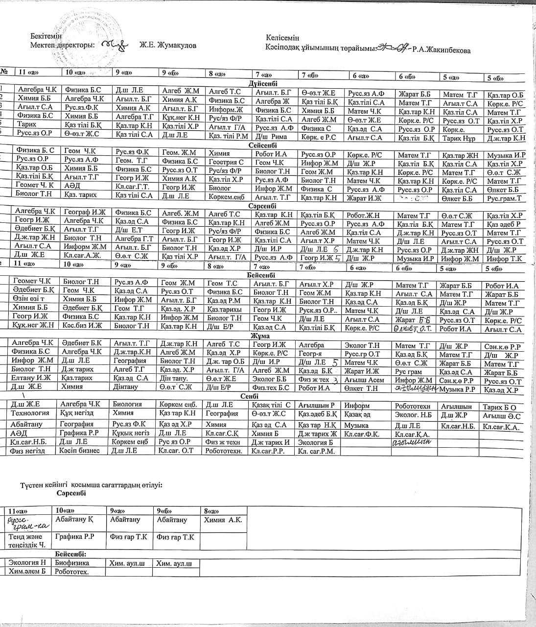 Расписание уроков » Абай облысы білім басқармасы Мақаншы ауданы білім бөлімінің "Ахмет Байтұрсынұлы атындағы орта мектебі" КММ