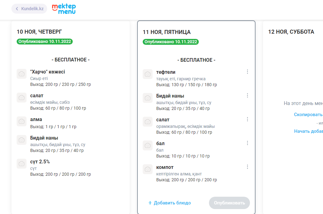 Күнделік.кз сайтында ас мәзірінің жариялануы