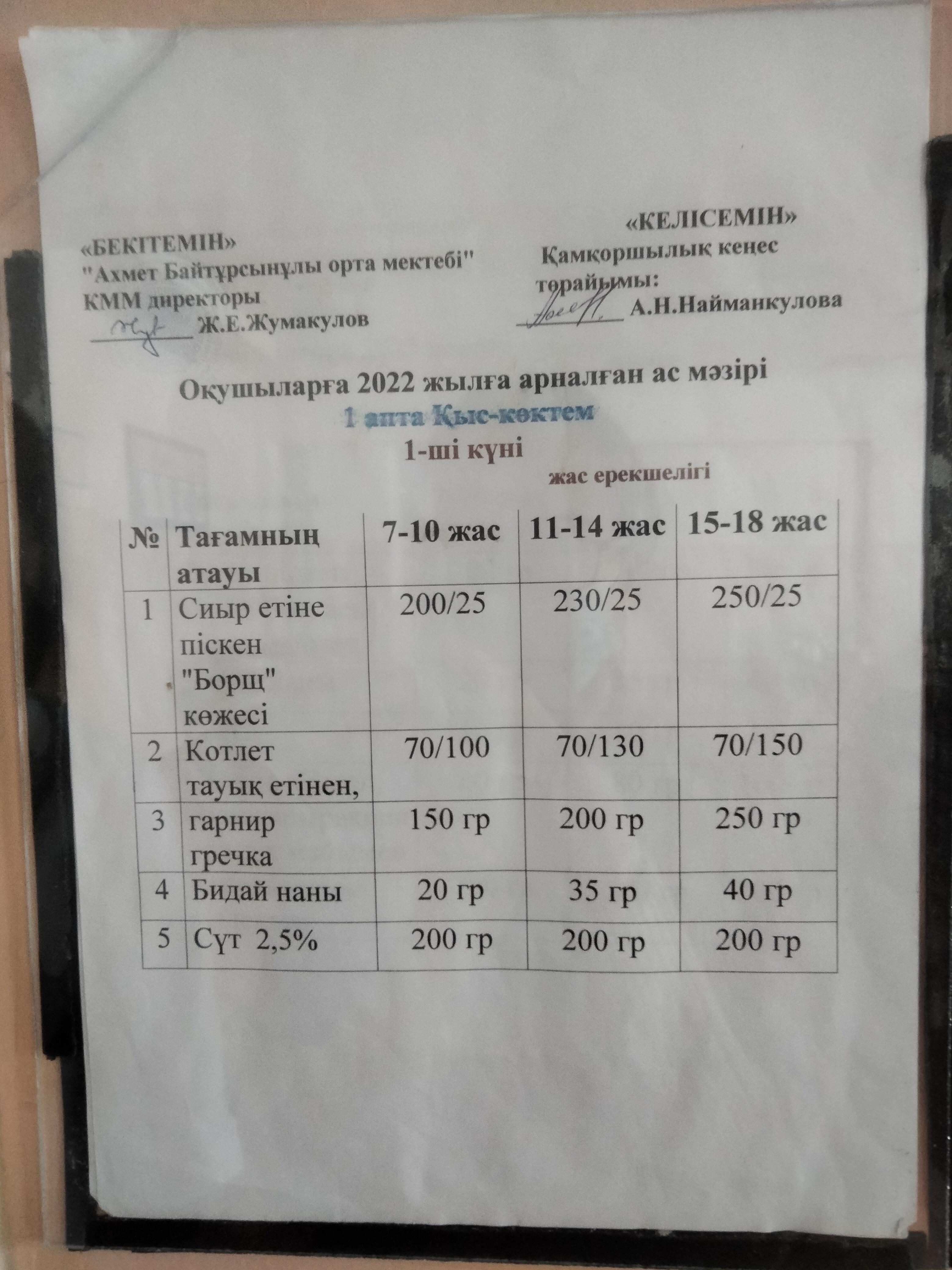 Күнделікті ас мәзірі 12.12.2022 » Абай облысы білім басқармасы Мақаншы ауданы білім бөлімінің "Ахмет Байтұрсынұлы атындағы орта мектебі" КММ