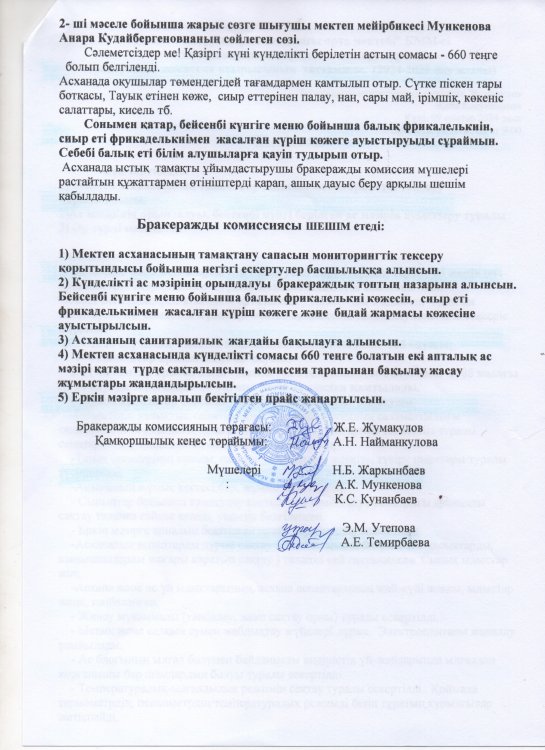 2)Күнделікті ас мәзірінің орындалуы бракераждық топтың назарына алынсын.